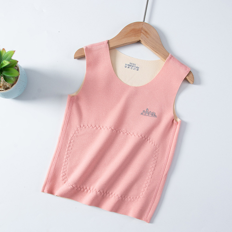 韩版秋冬儿童贴片护肚背心男女童双面磨毛打底上衣薄绒德保暖马甲