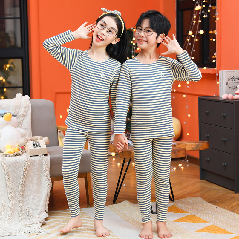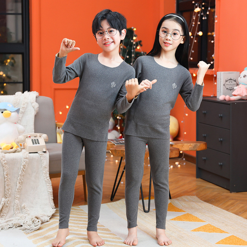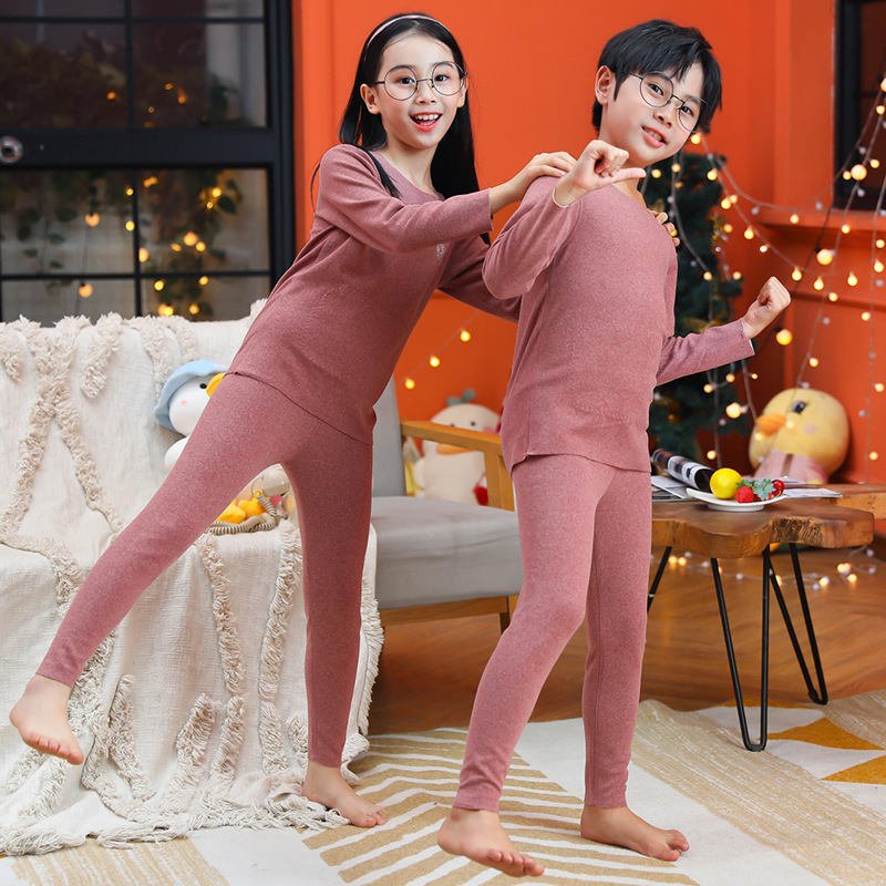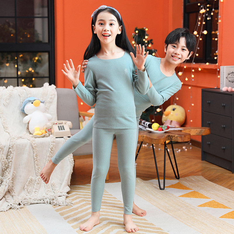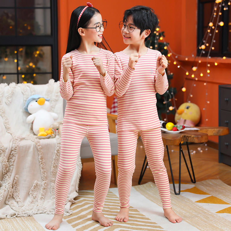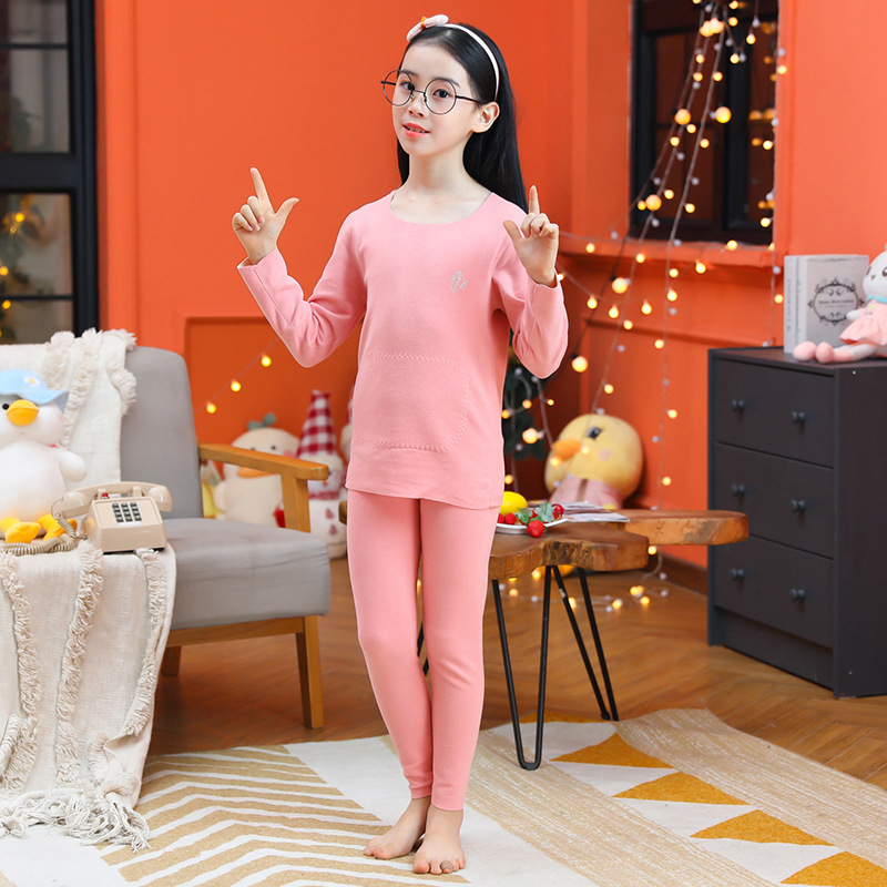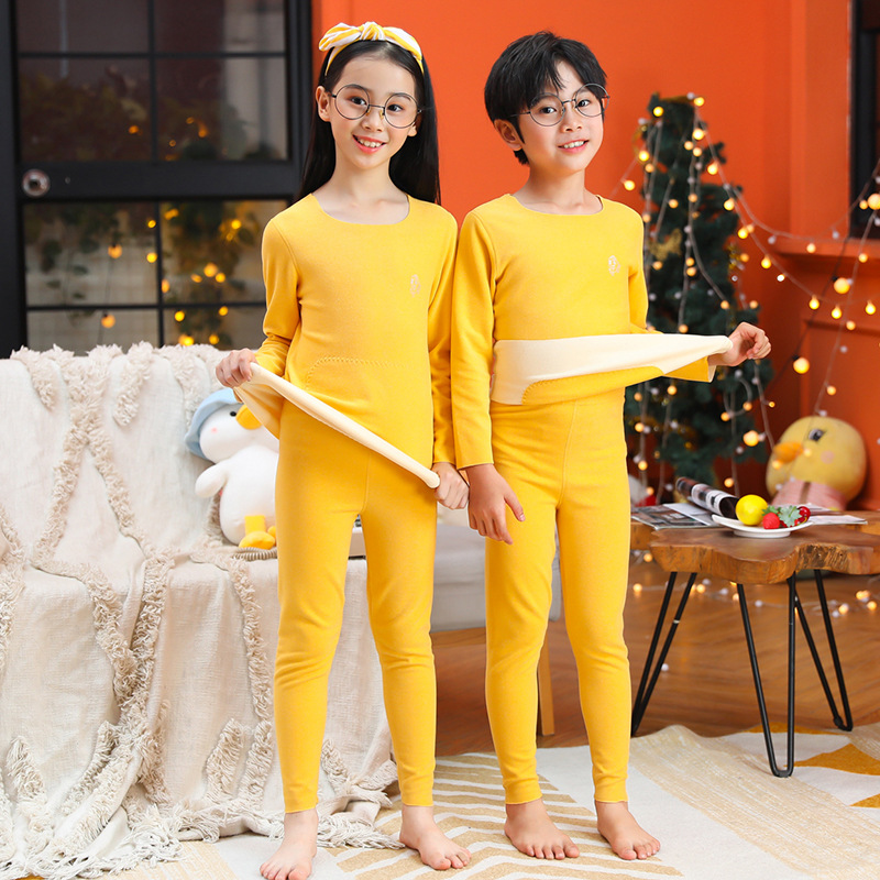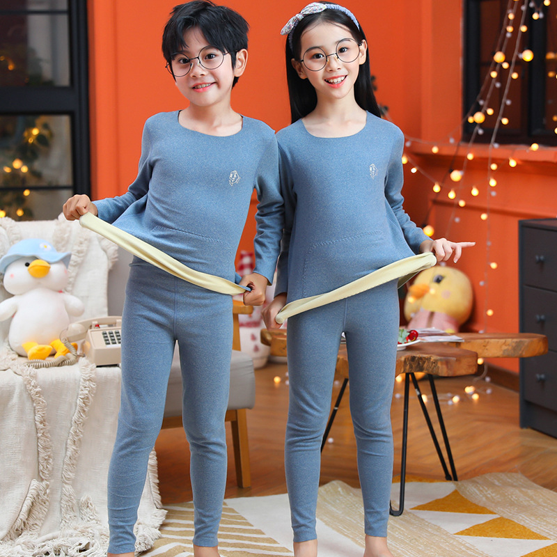 男童无骨德薄绒保暖内衣套装女童护肚贴片秋衣秋裤中小童睡衣睡裤