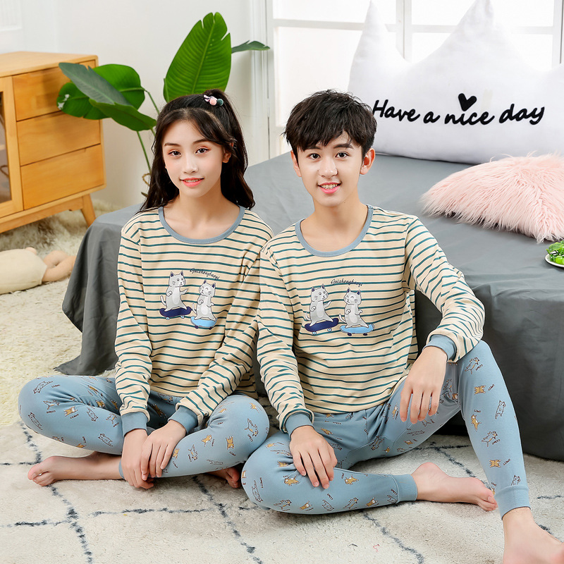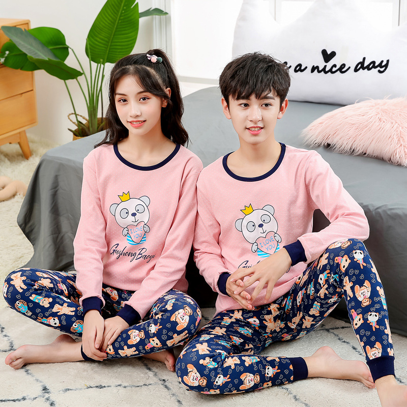 medium and large children‘s underwear set boys‘ autumn clothes long pants girls‘ cotton wool bottoming shirt children‘s pajamas air conditioning clothes in stock