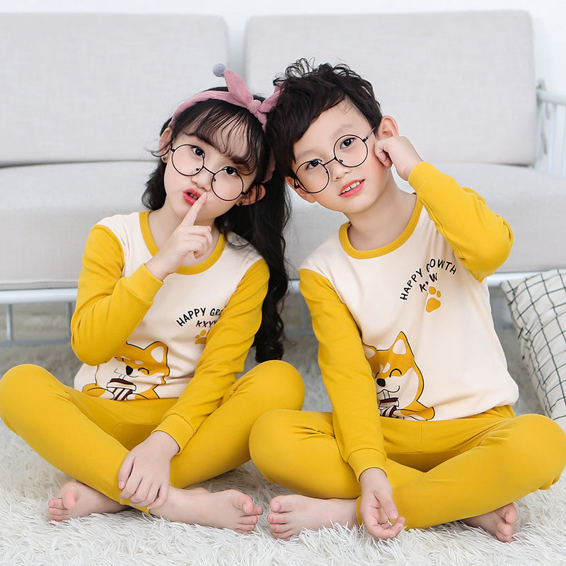 新款秋冬儿童家居服套装大中小童棉质秋衣裤男女童卡通睡衣两件套