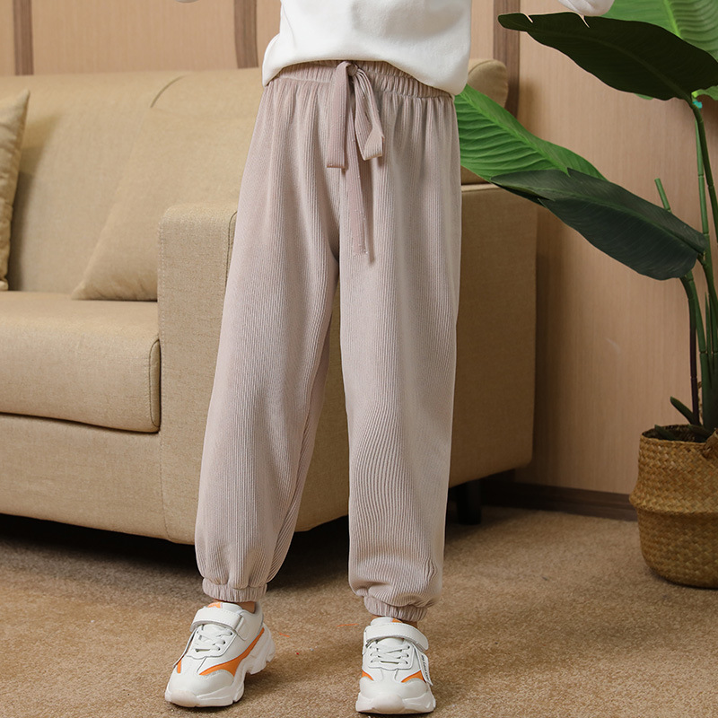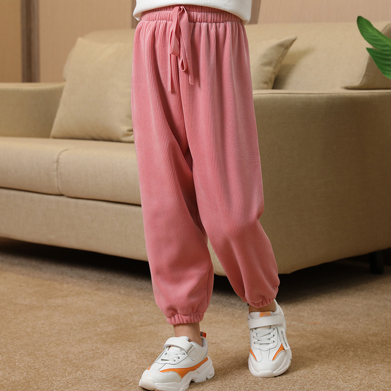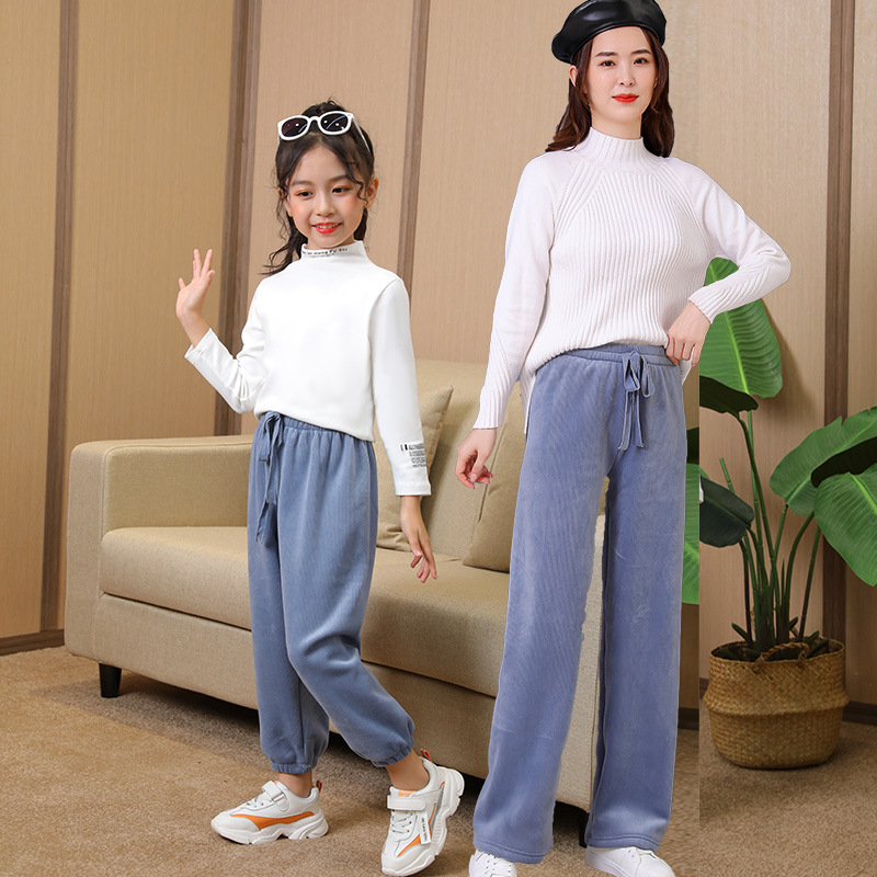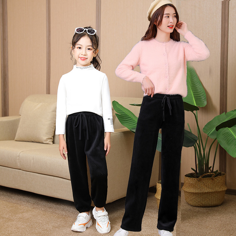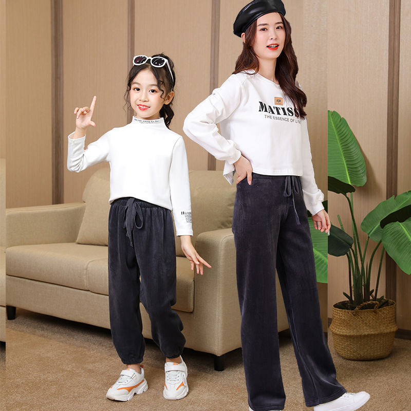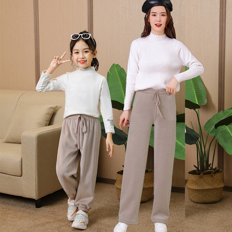 女童加绒加厚保暖弹力打底裤母女外穿灯芯绒阔腿裤宝宝运动裤现货