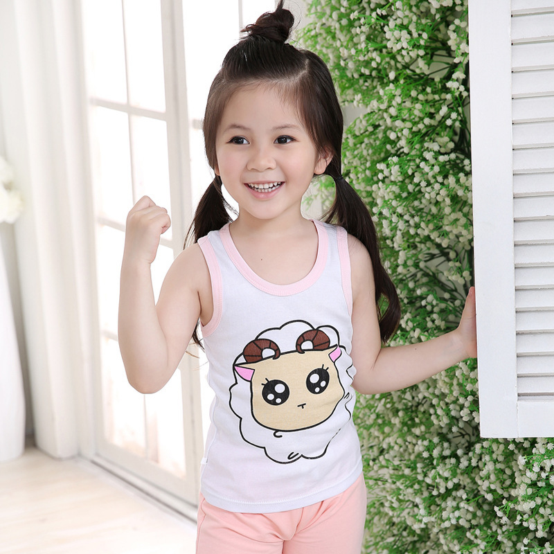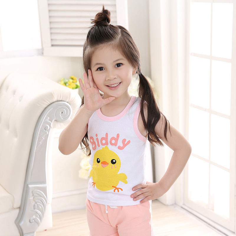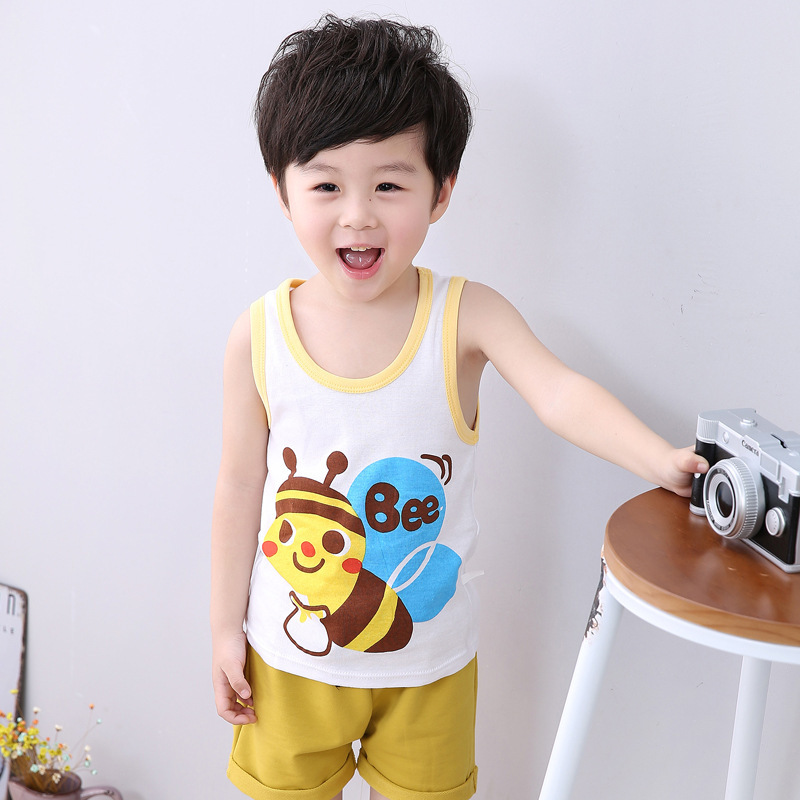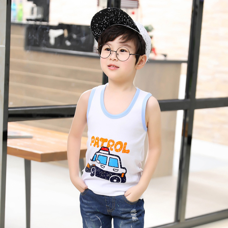 夏季休闲童中性儿童背心运动卡通棉圆领针织背心现货