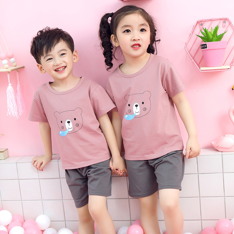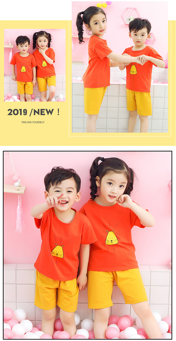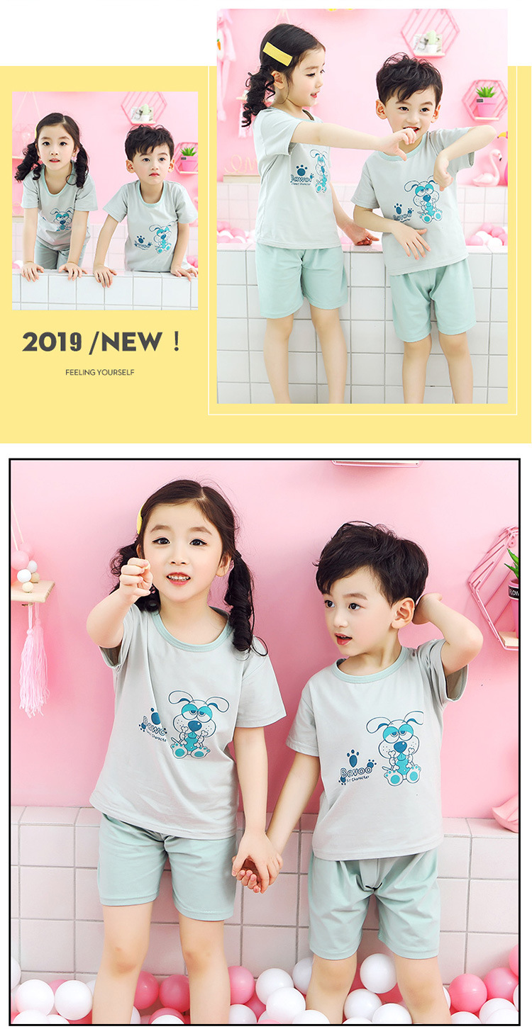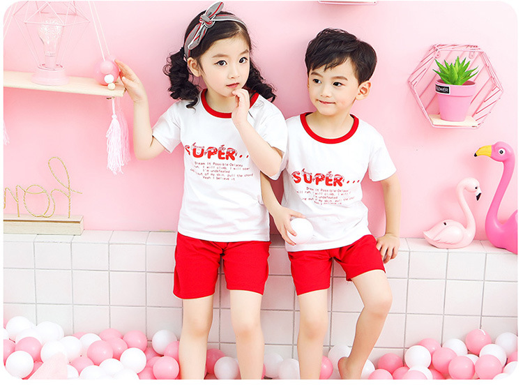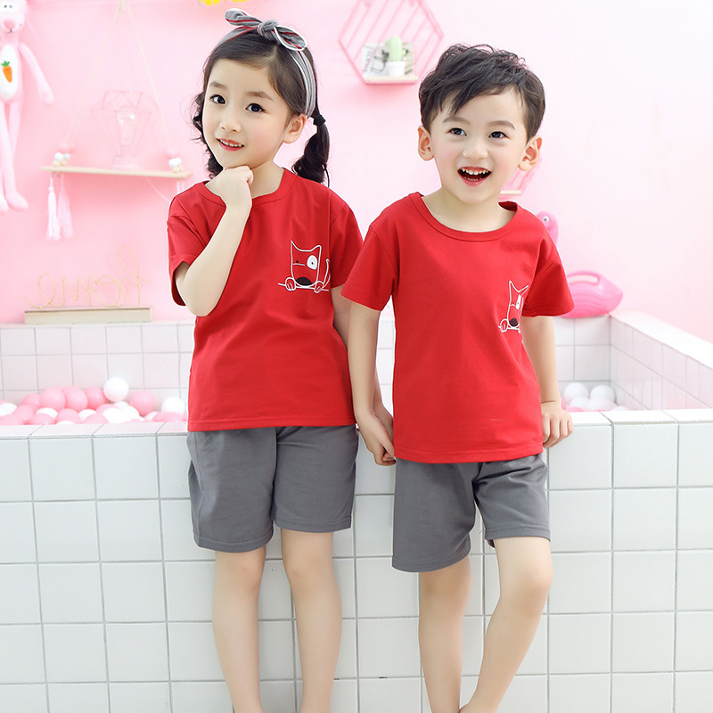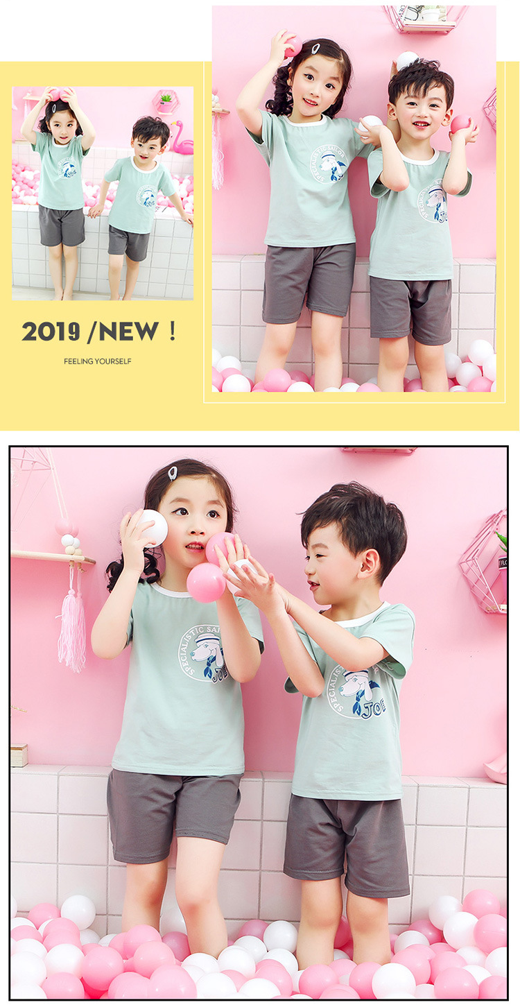 儿童短袖套装夏韩版男女童家居服中小童宝宝幼儿园班服厂家直批