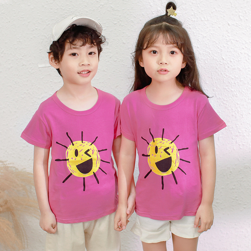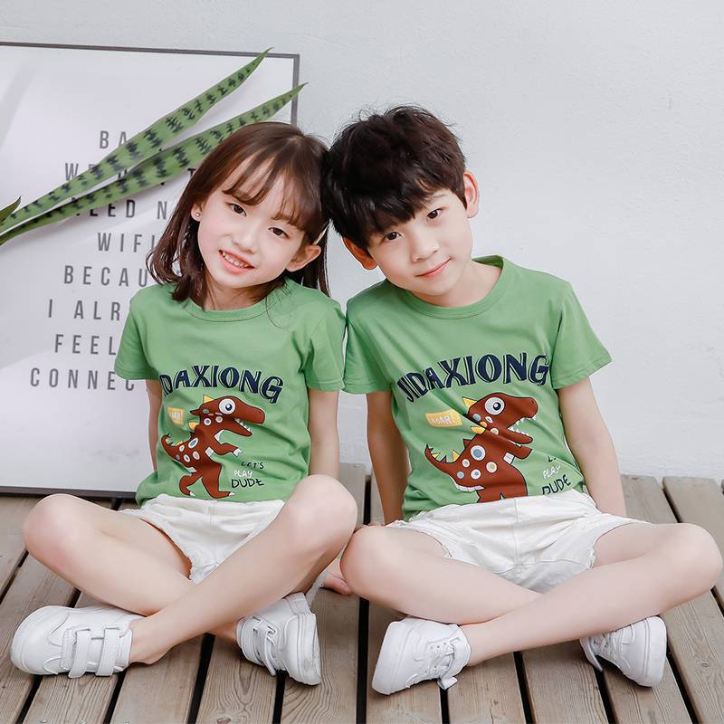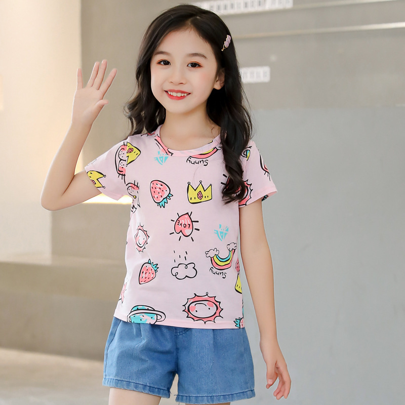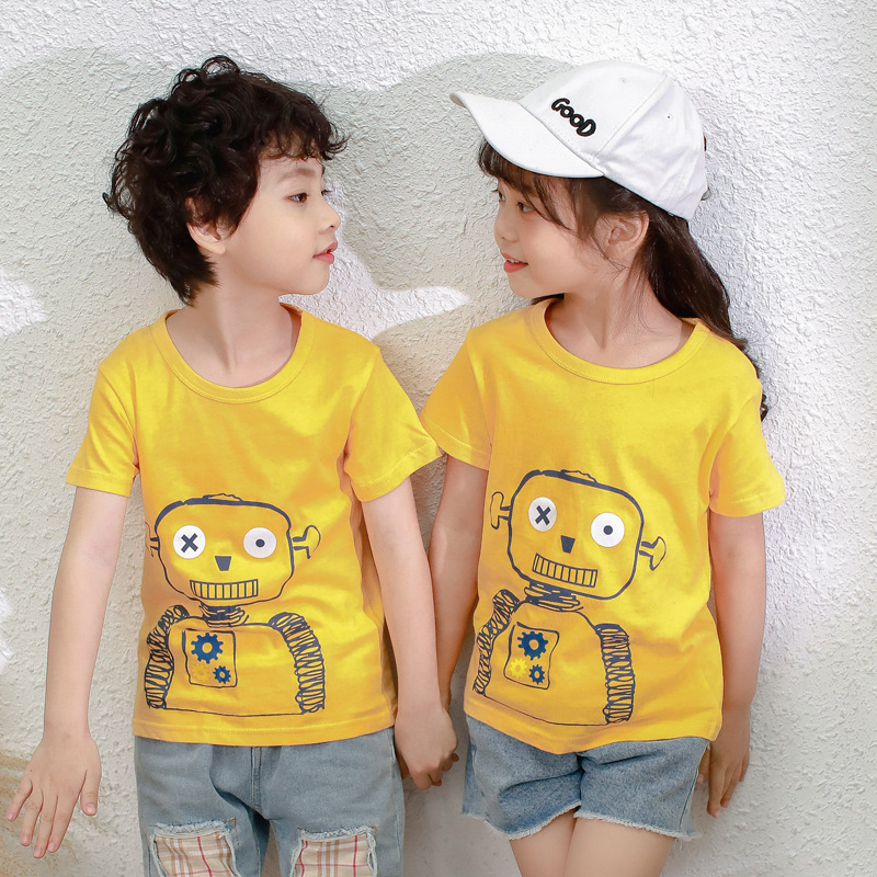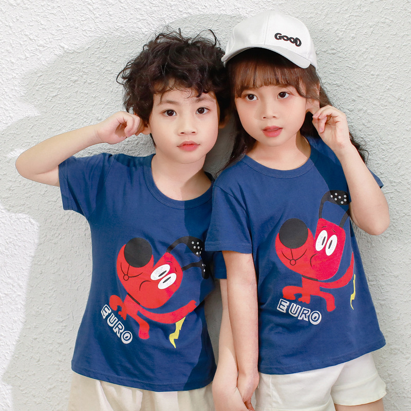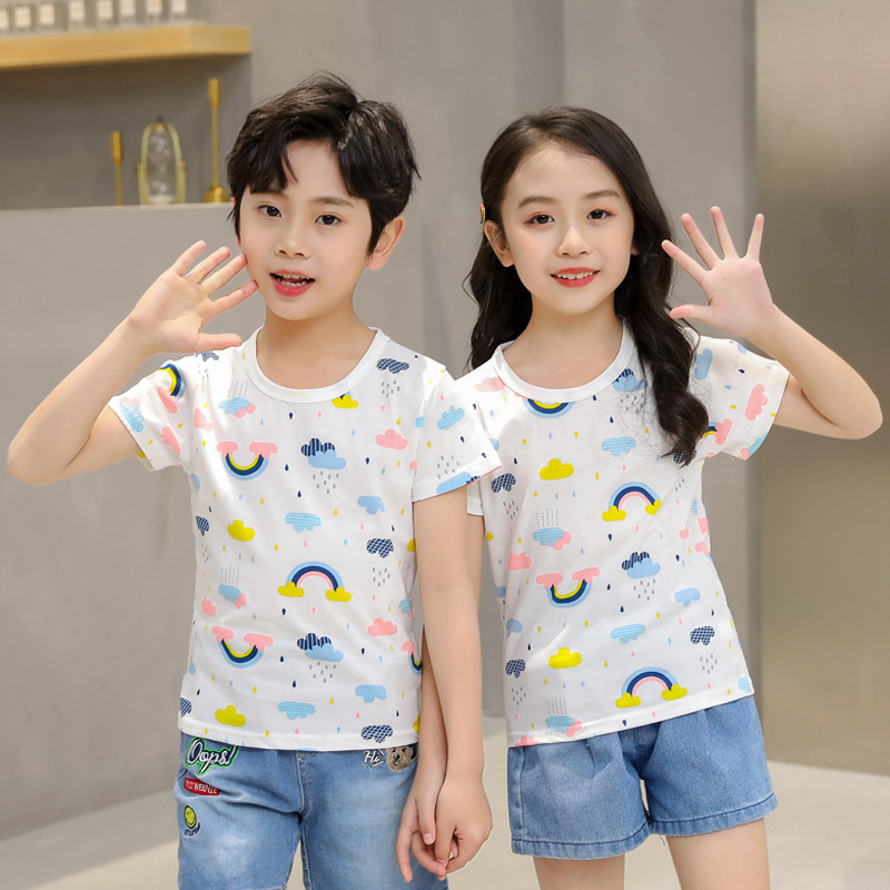 夏季童装短袖儿童棉质T恤休闲卡通印花上衣男女宝宝t恤一件代发