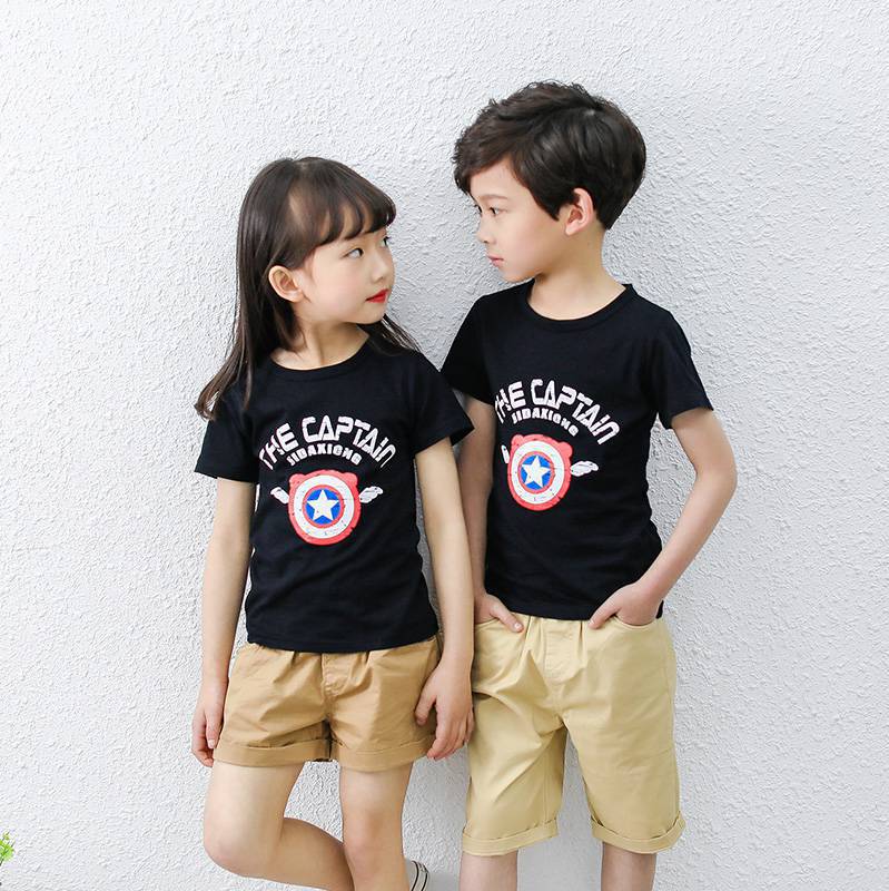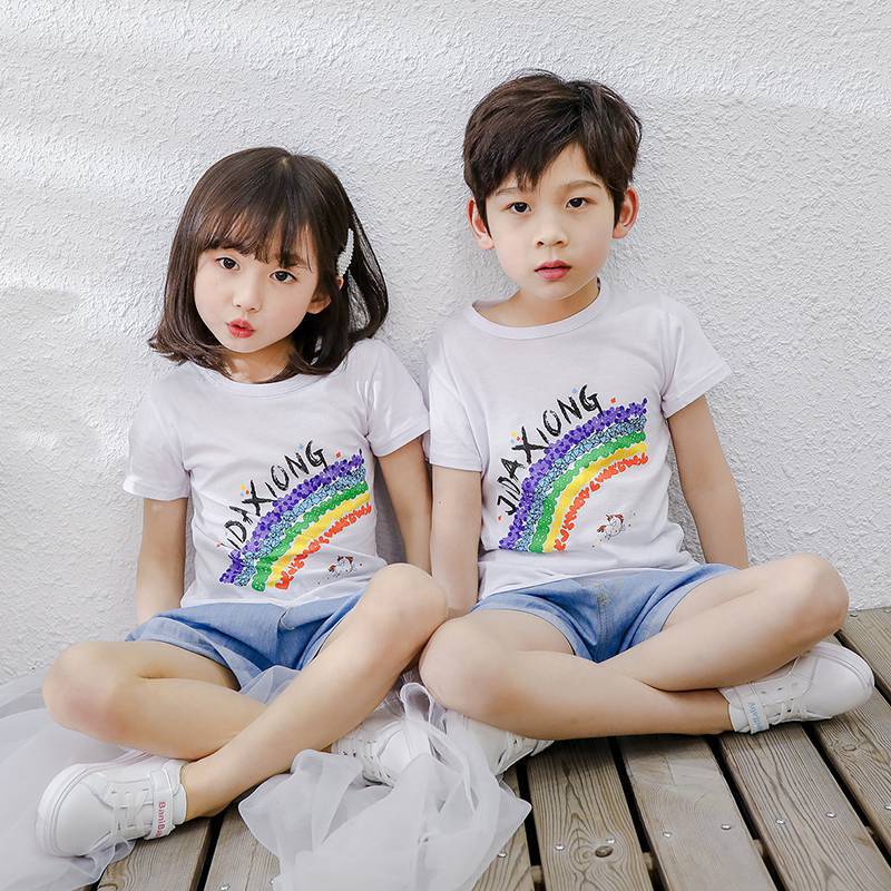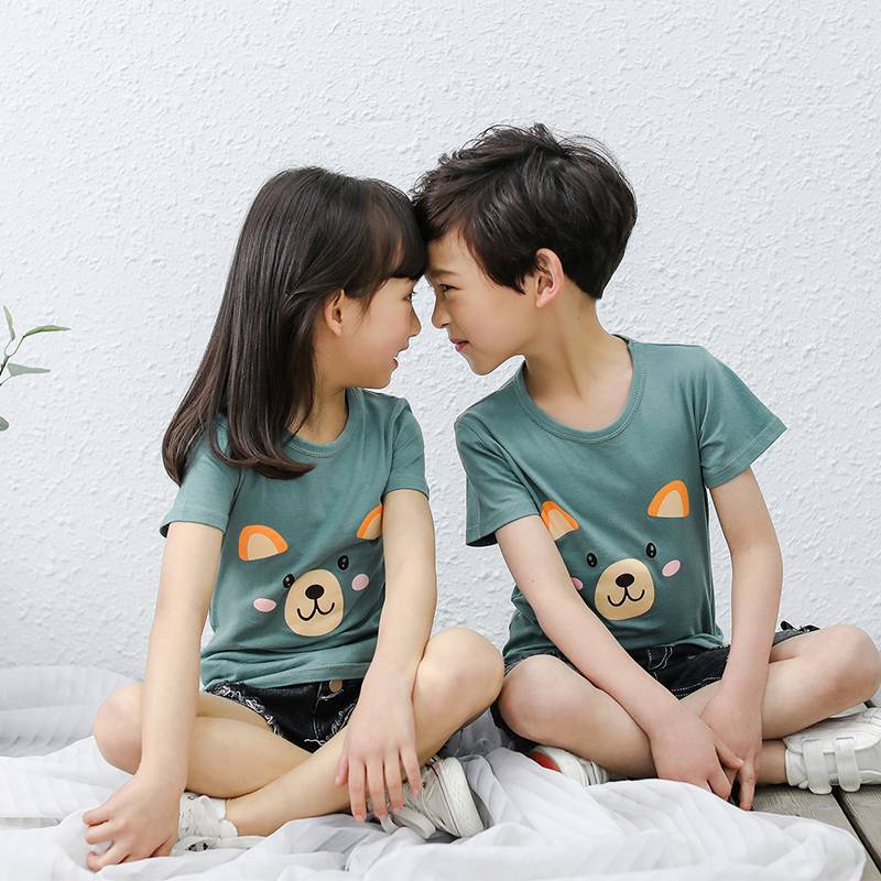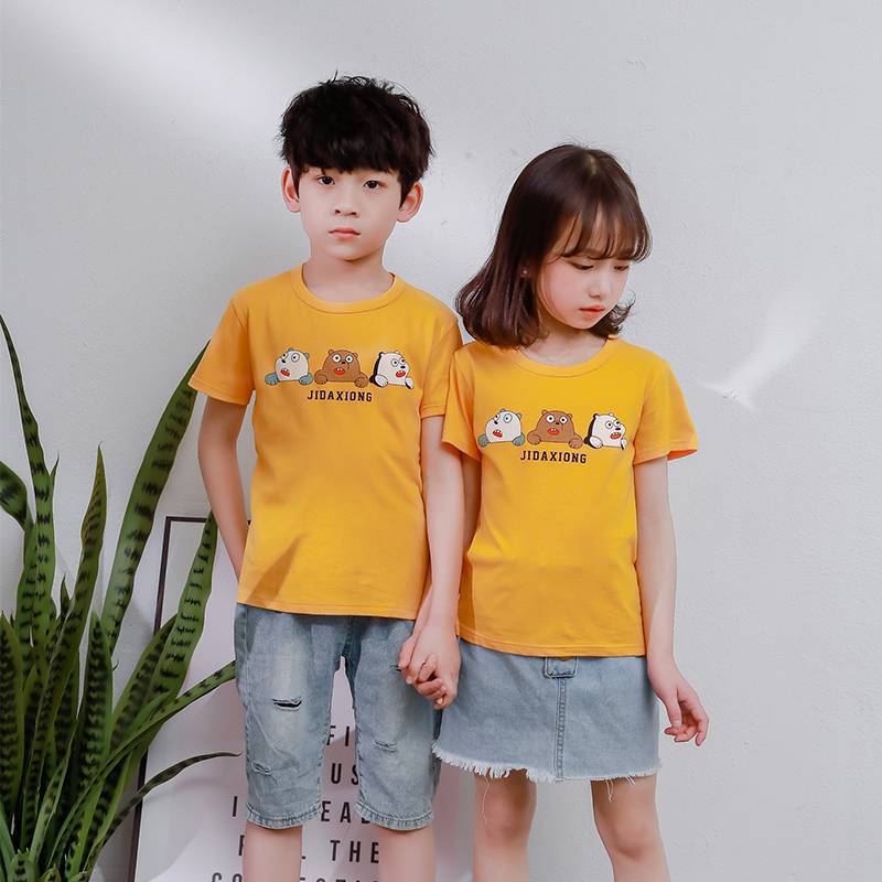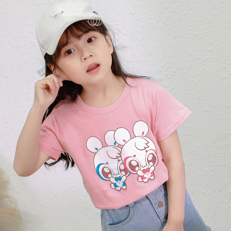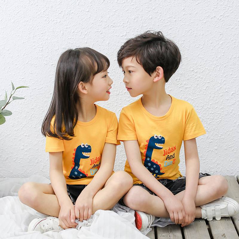 夏季童装短袖儿童棉质T恤休闲卡通印花上衣男女宝宝t恤一件代发