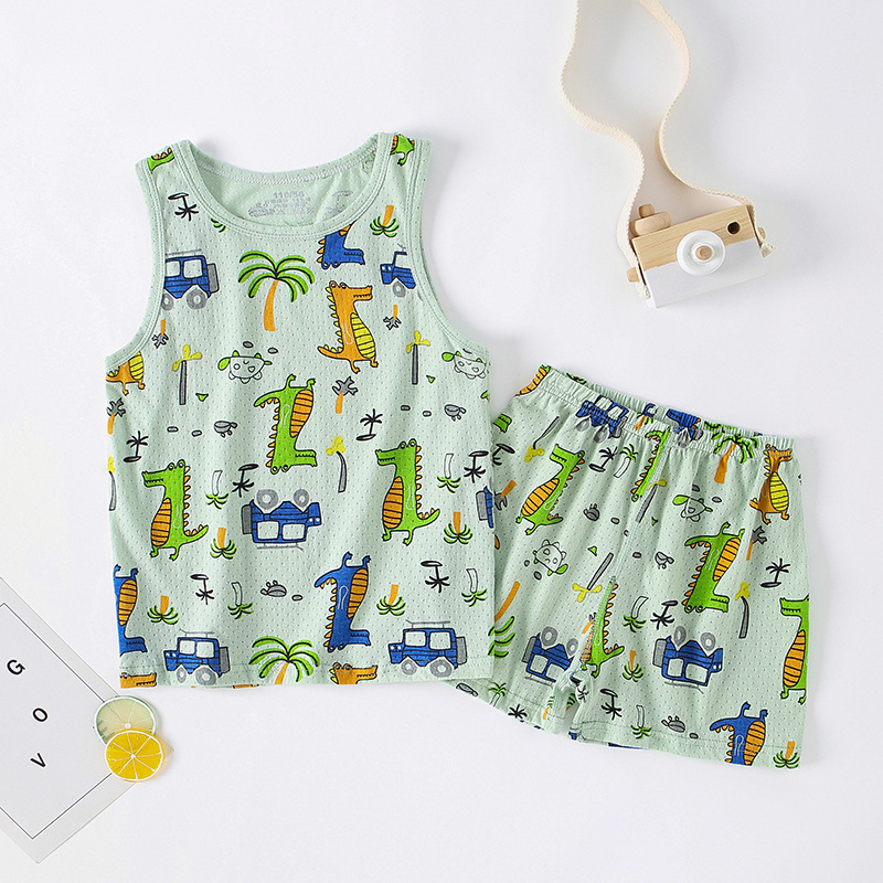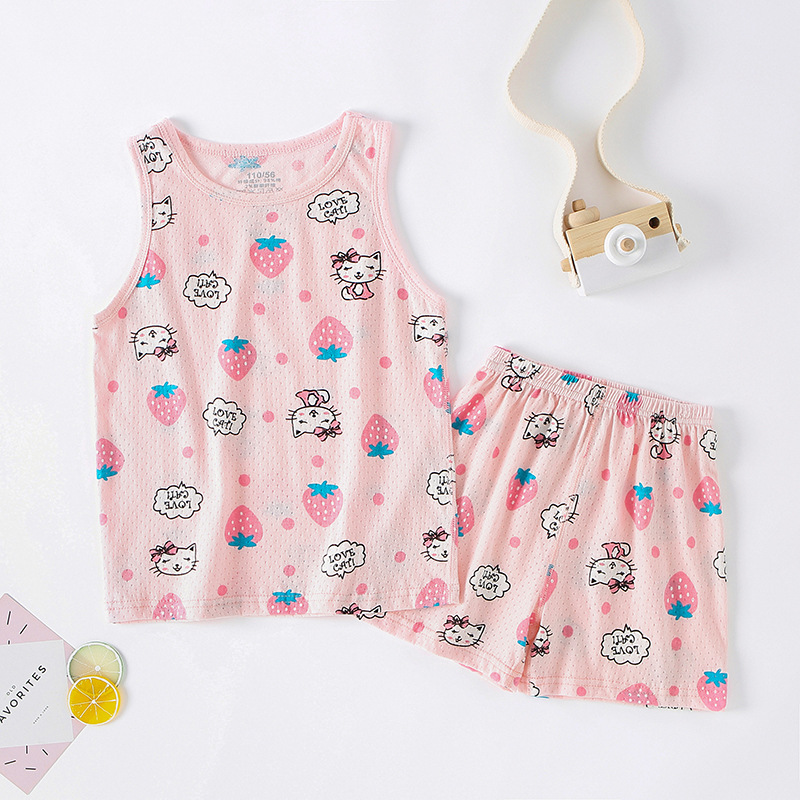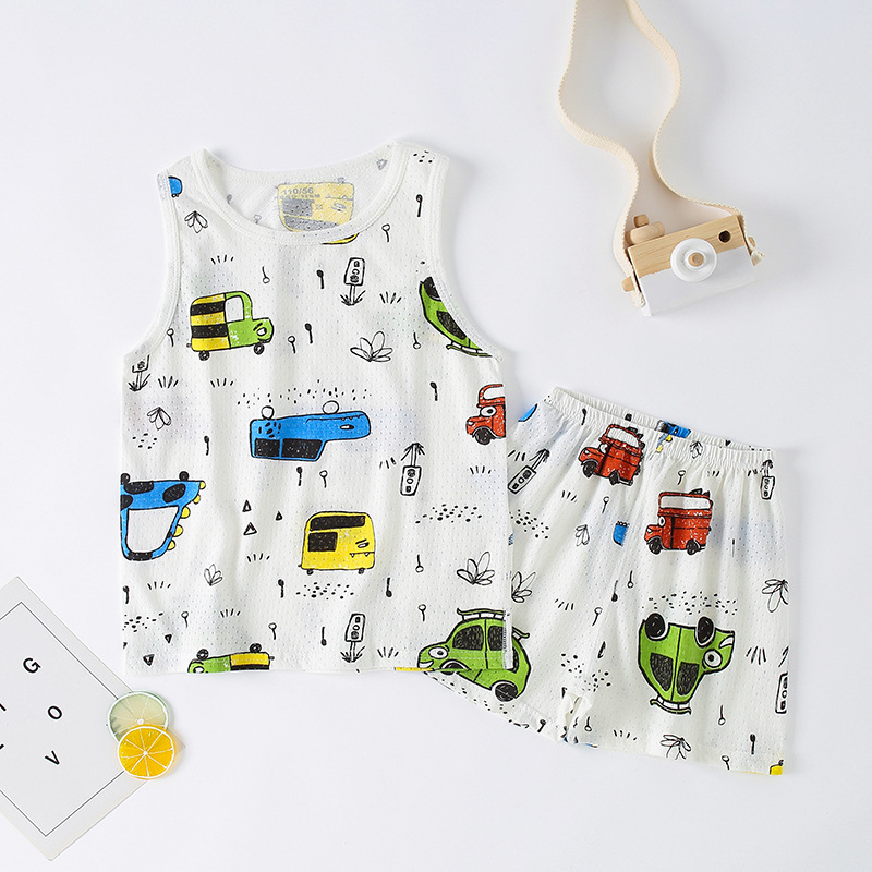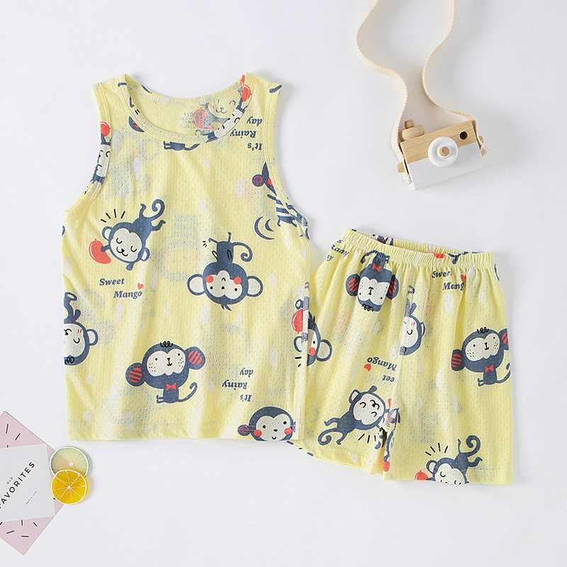 新款儿童呼吸棉背心套装韩版男童女童卡通印花套头衫透气宝宝衣服