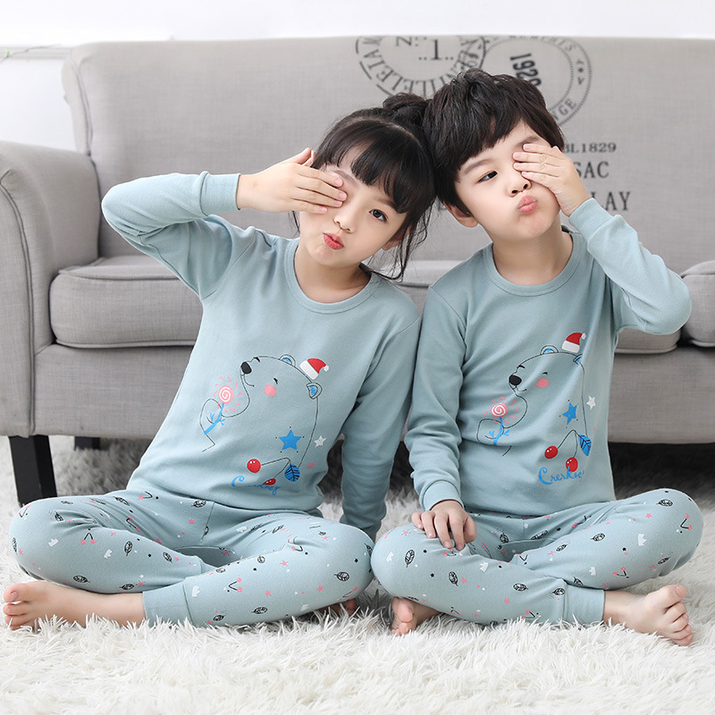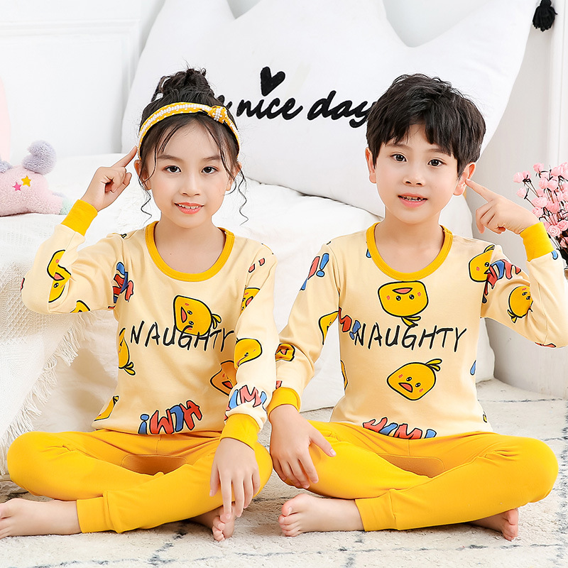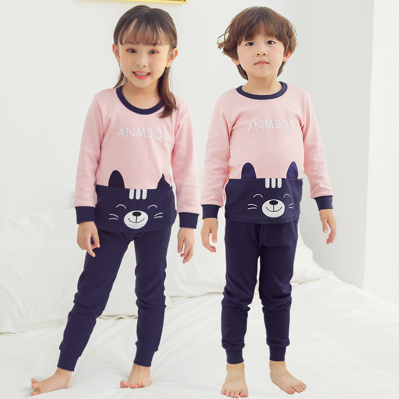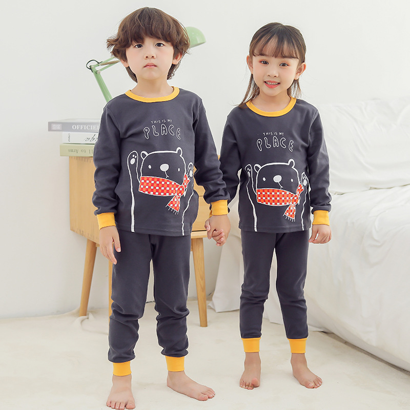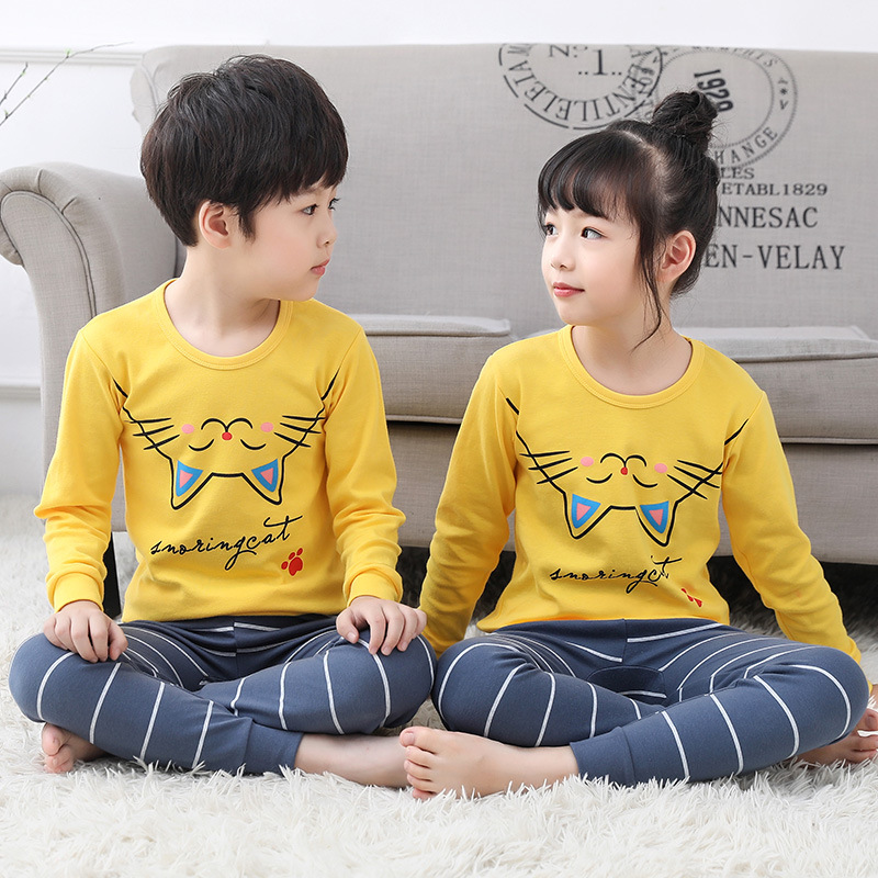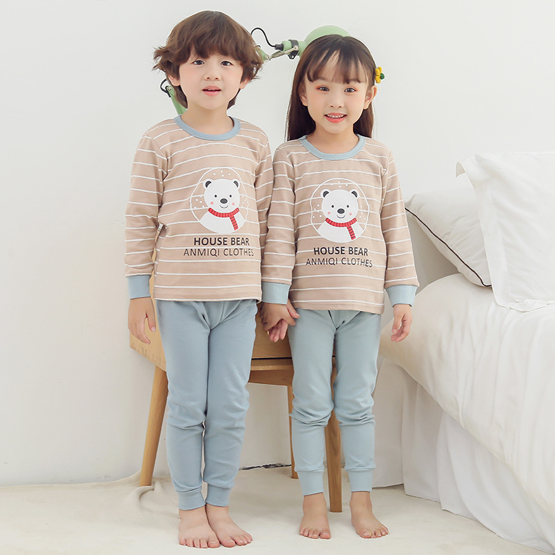 秋冬儿童保暖内衣批发男女童圆领上衣长裤套装宝宝棉毛家居服现货