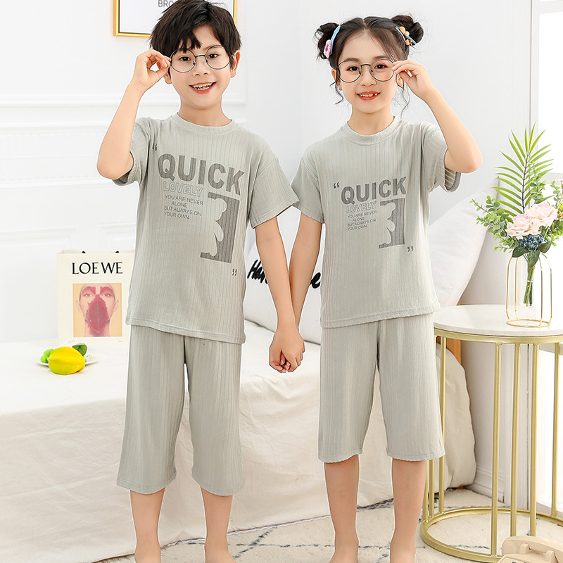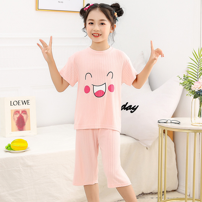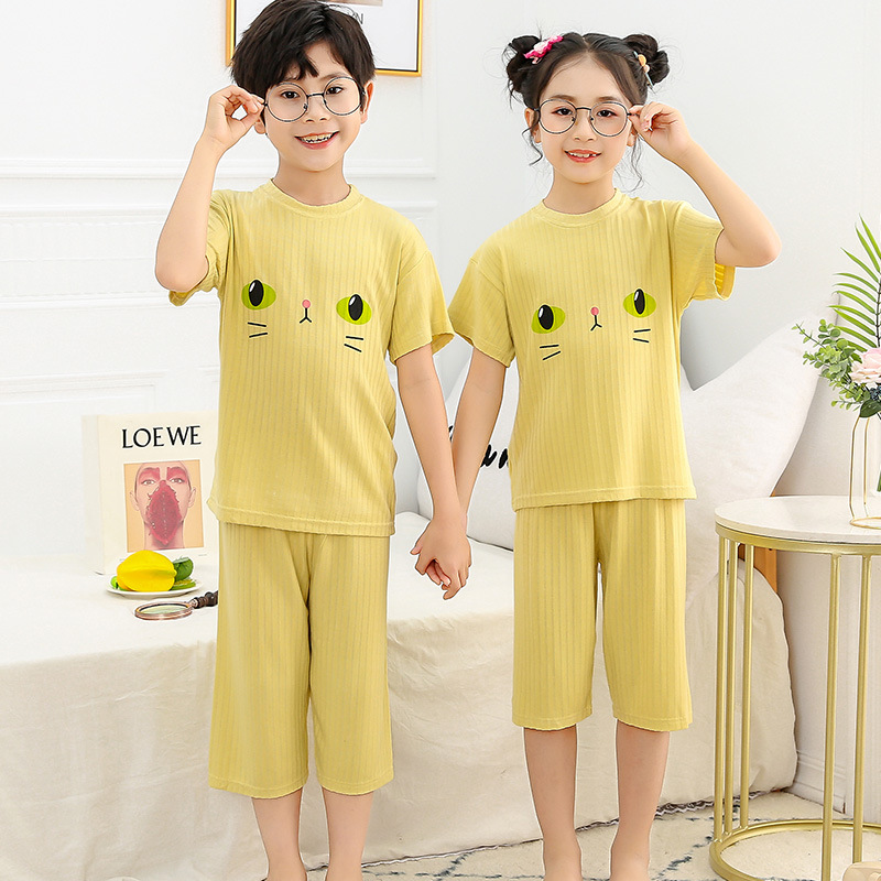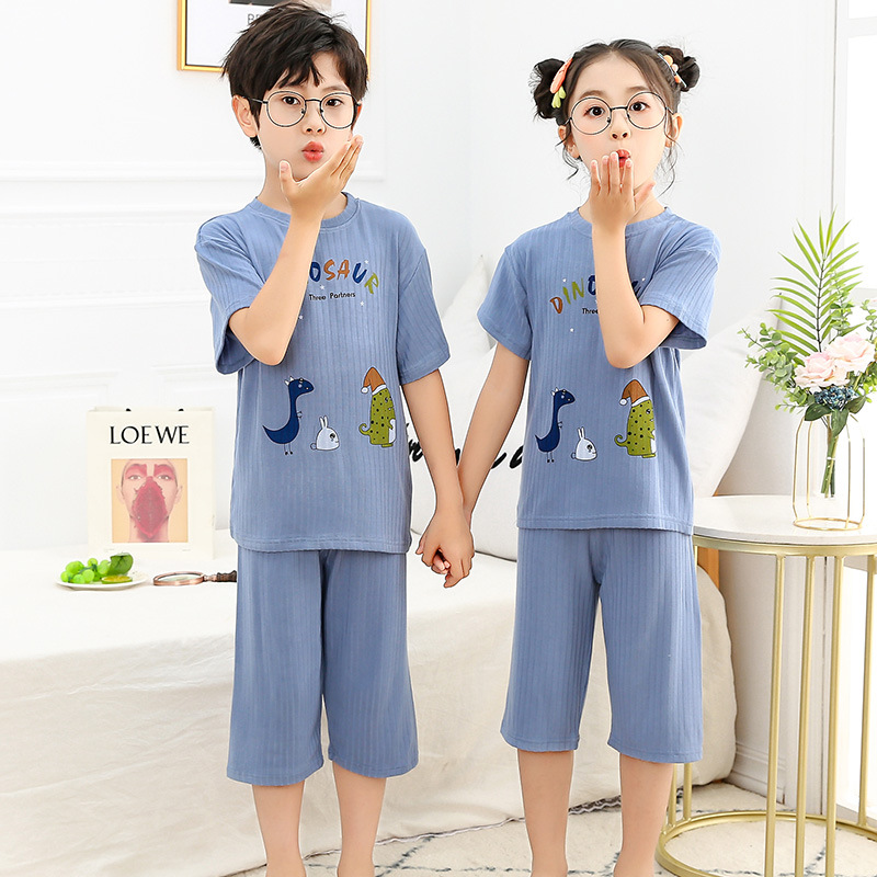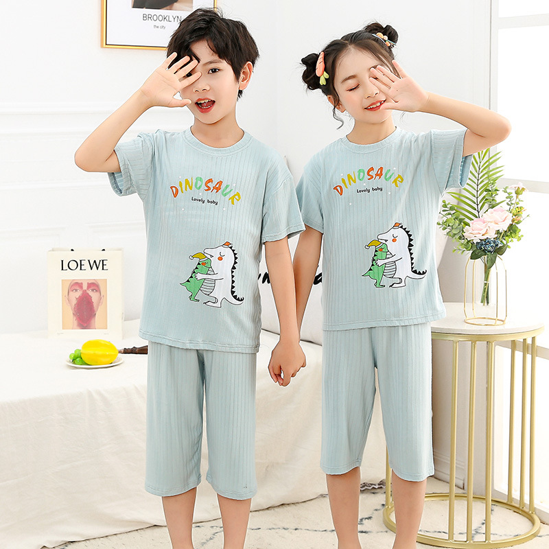 儿童家居服套装夏季新款男女童面膜T七分裤两件套卡通宝宝空调服