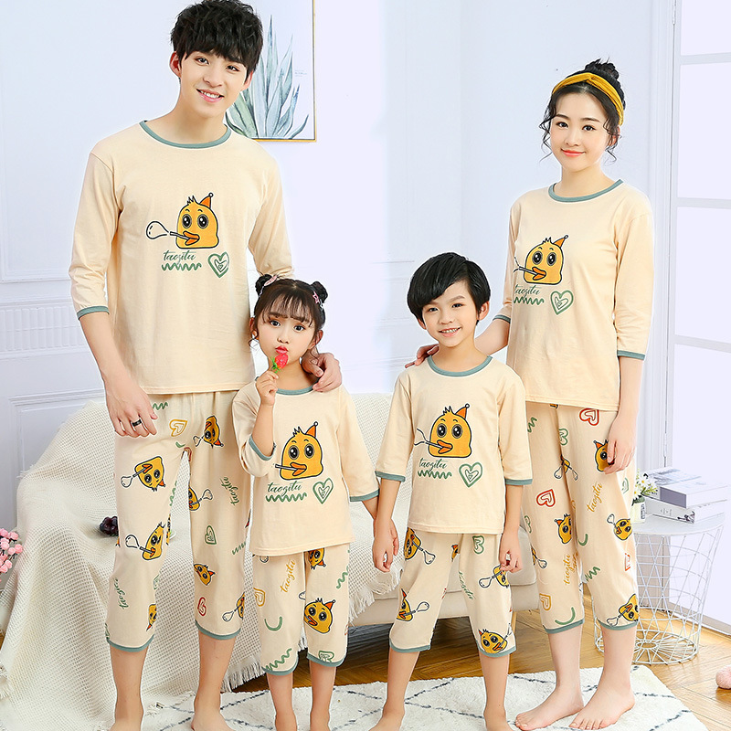 春秋新款亲子装儿童睡衣情侣家居服母女父子外穿两件套一件代发