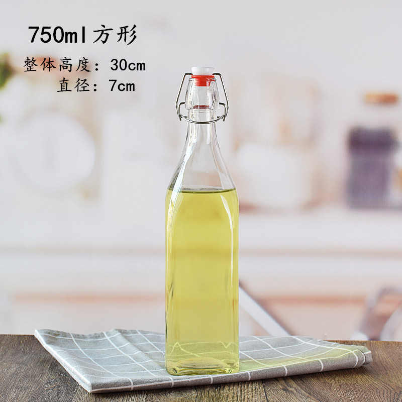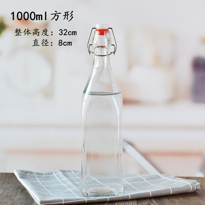 密封玻璃瓶透明果汁饮料玻璃瓶铁扣密封瓶酵素瓶调料瓶白酒分装瓶