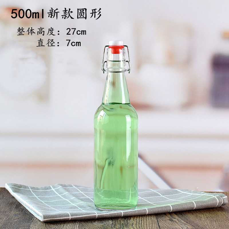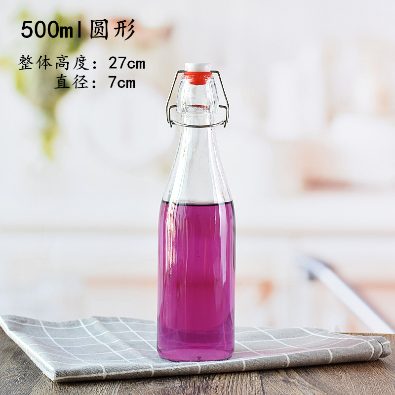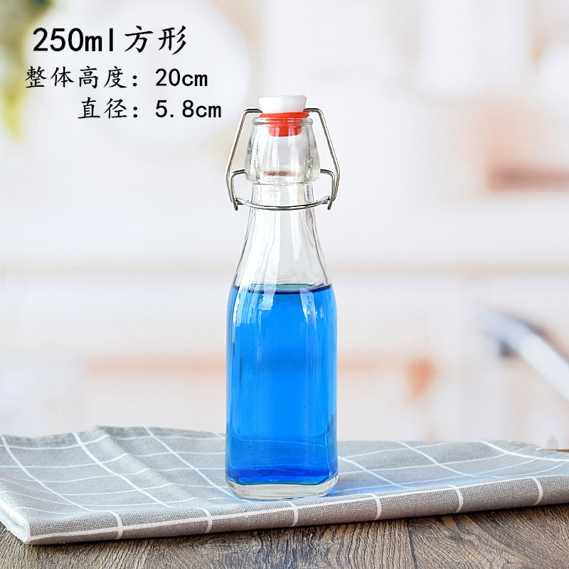 sealed glass bottle transparent juice beverage glass bottle iron buckle sealed bottle enzyme bottle seasoning bottle liquor sub-bottle