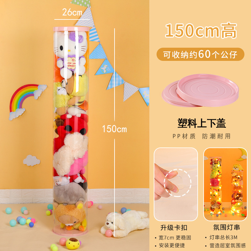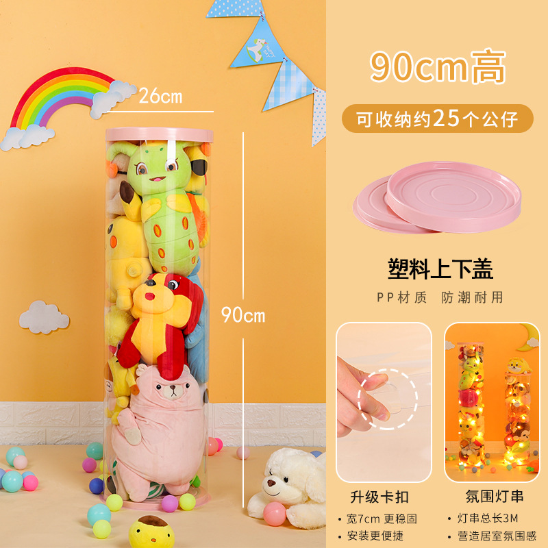 娃娃收纳桶玩偶圆柱透明收纳筒 毛绒公仔收纳神器卡扣娃娃展示桶