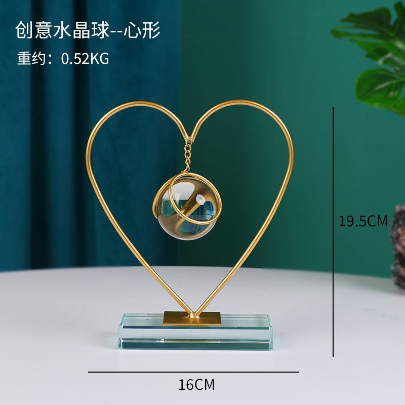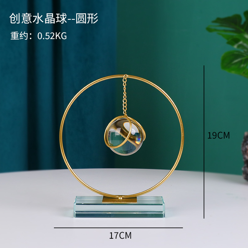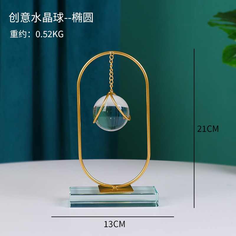 ins轻奢创意几何水晶球摆件 家居装饰品客厅酒柜样板间金属摆设