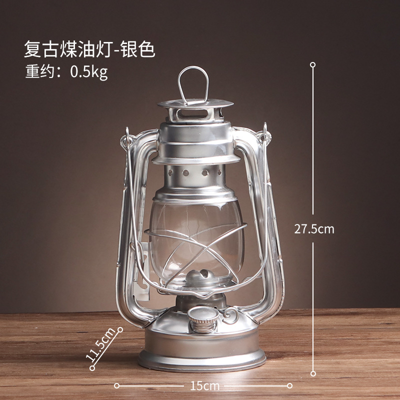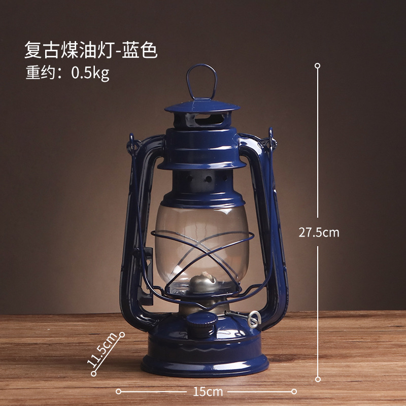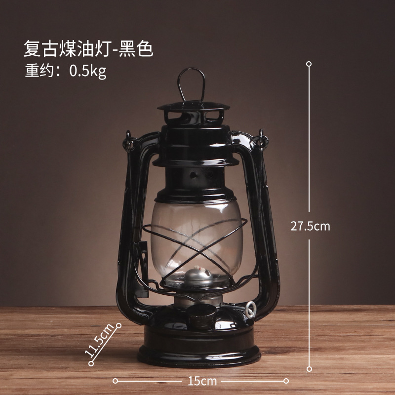 怀旧复古铁艺煤油灯摆件 老式手提玻璃马灯装饰品户外野营灯道具