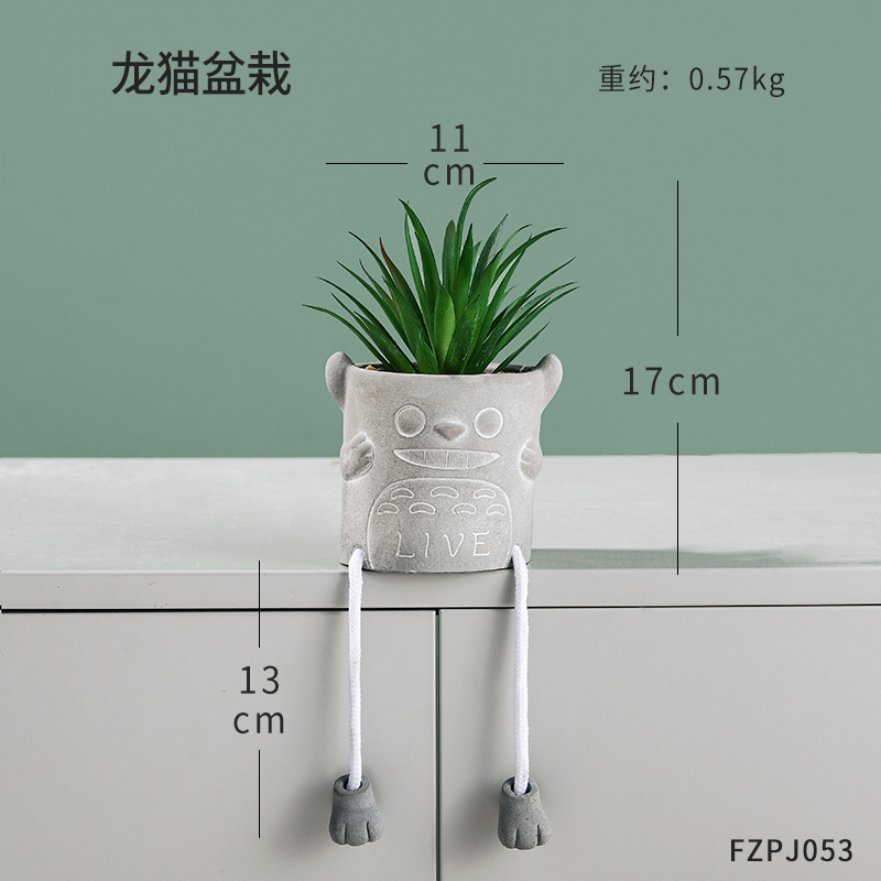 北欧ins风仿真多肉小盆栽 创意办公室桌面吊脚娃娃假绿植装饰摆件