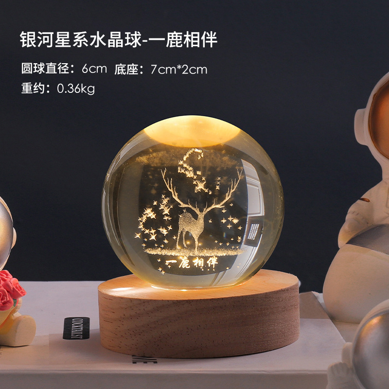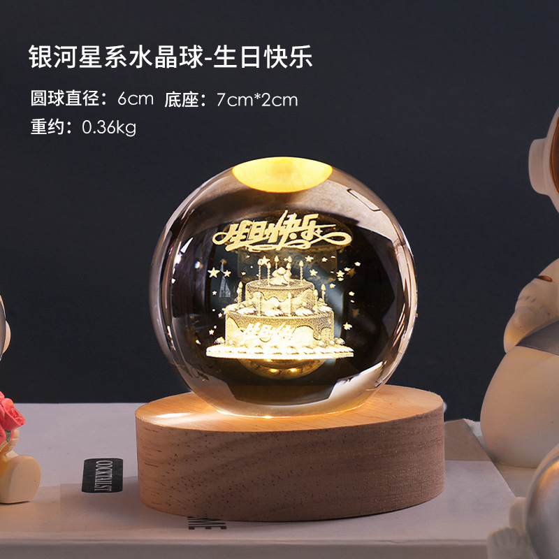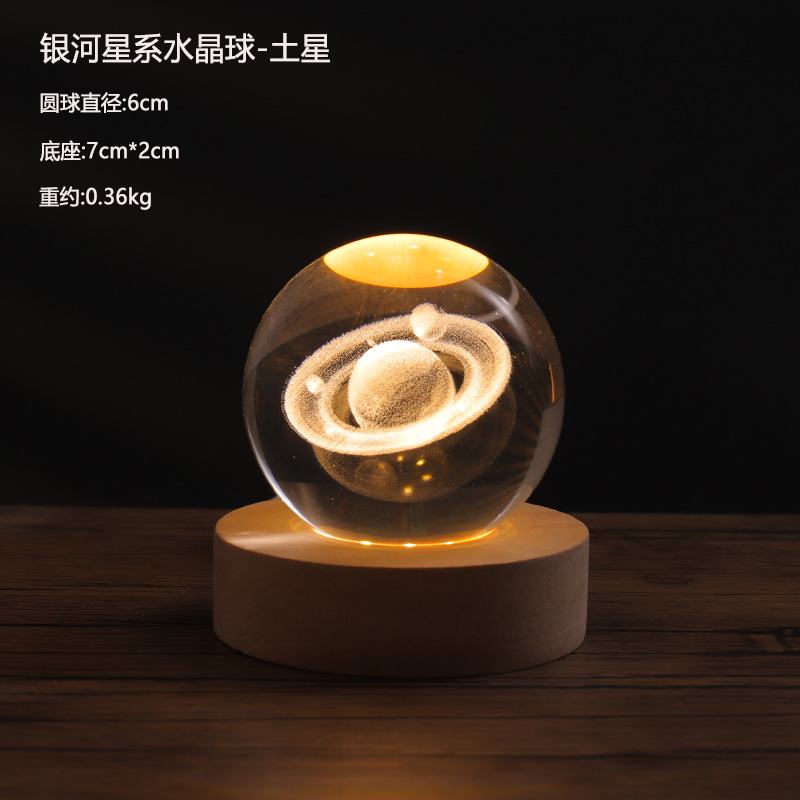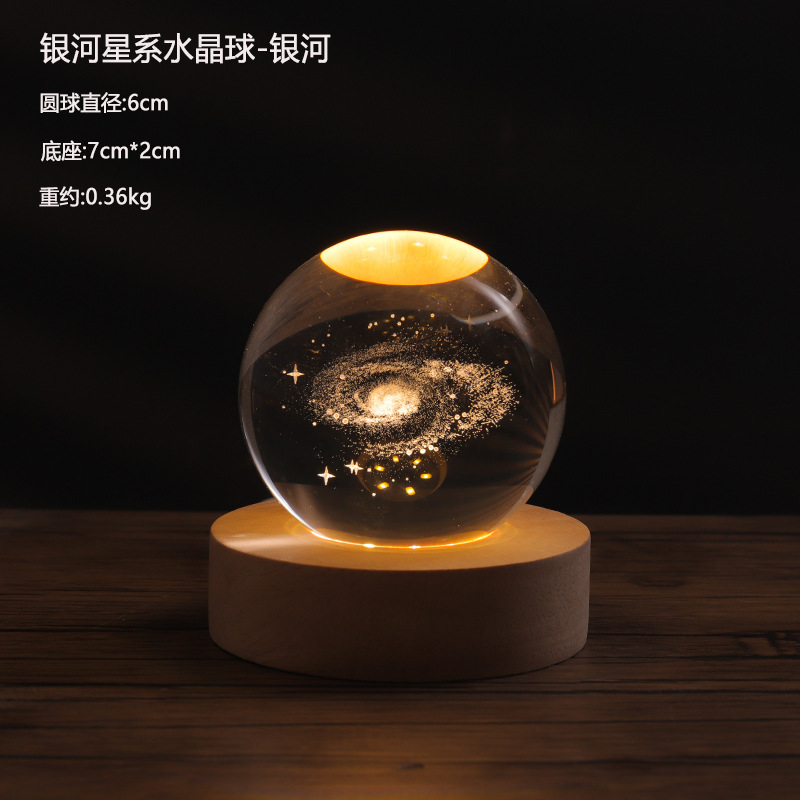 创意发光星系月球水晶球小夜灯 家居装饰品送女友生日礼物礼品
