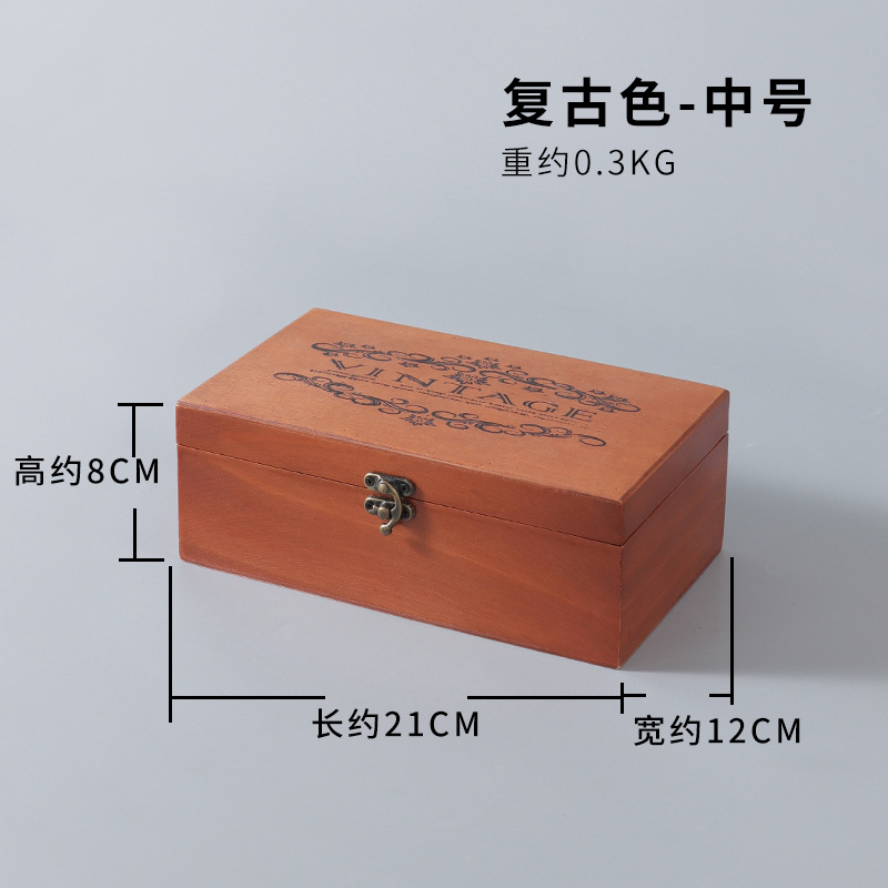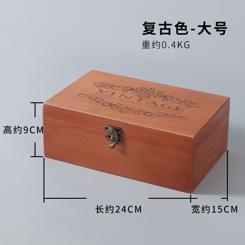创意zakka复古木质收纳盒 办公桌面首饰化妆品整理盒带锁扣翻盖