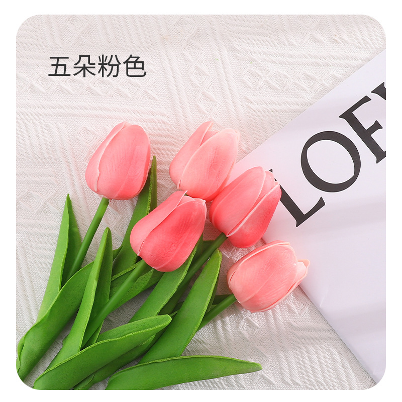 北欧ins仿真郁金香假花摆件 手感保湿郁金花束客厅餐桌面装饰盆栽