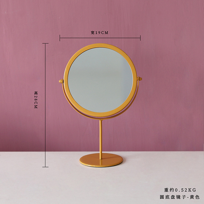 北欧ins金属单面圆形化妆镜 女生宿舍卧室桌面支架镜子台式梳妆镜