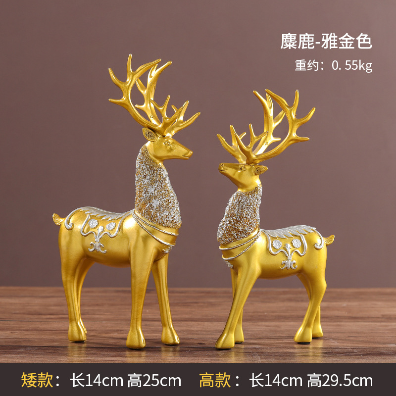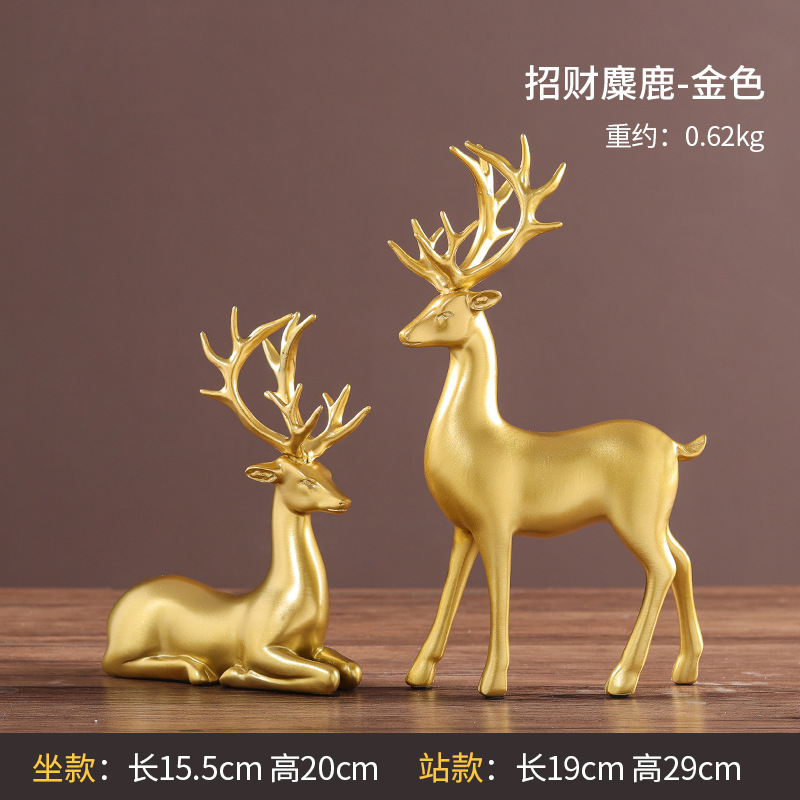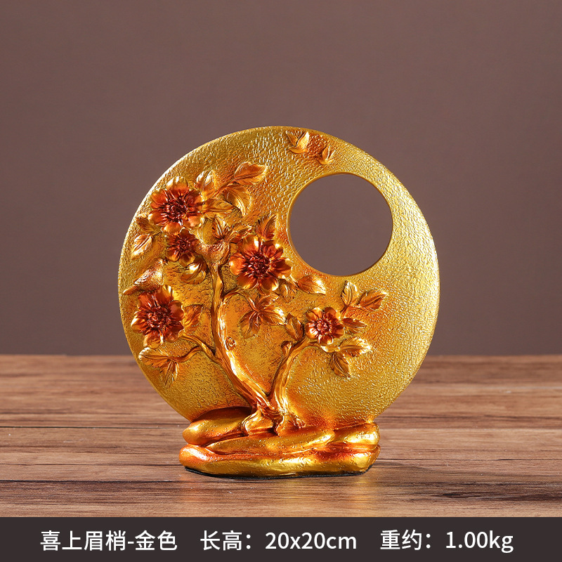 新中式轻奢金色高档树脂摆件 家居装饰品乔迁新居酒柜工艺品摆设