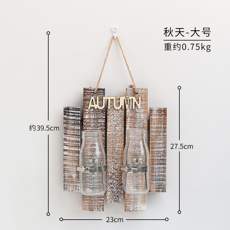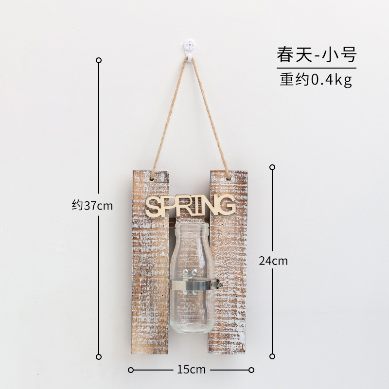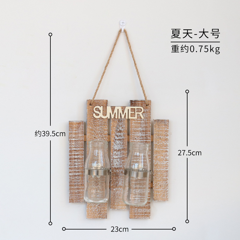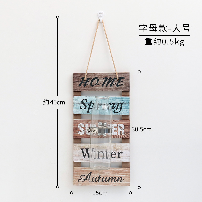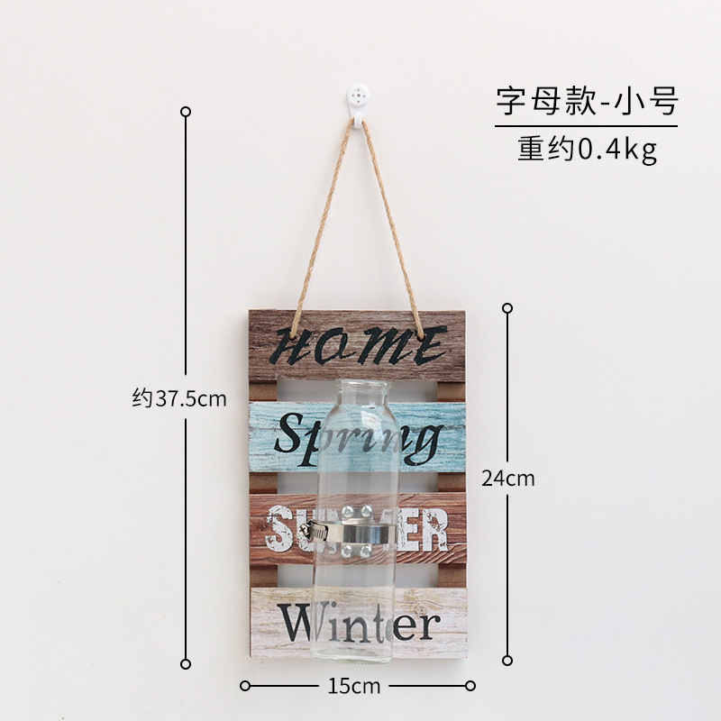 彩色木板绿萝植物水培壁饰 家居客厅墙面悬挂透明玻璃瓶装饰壁挂
