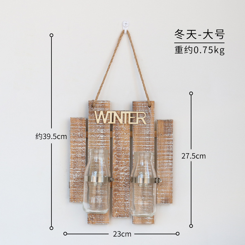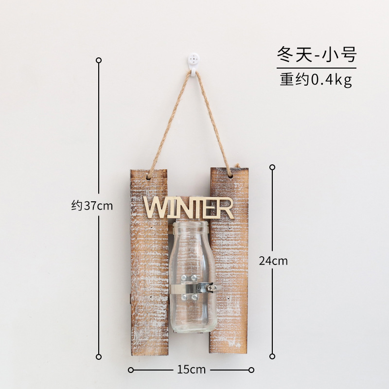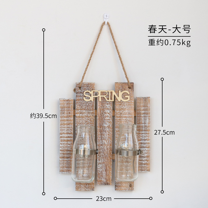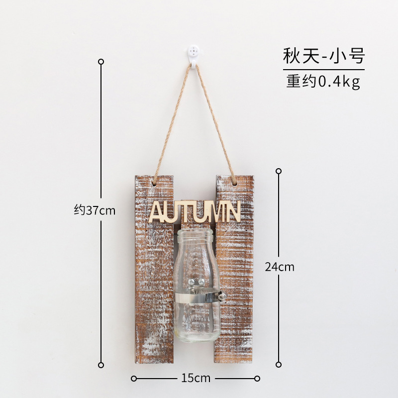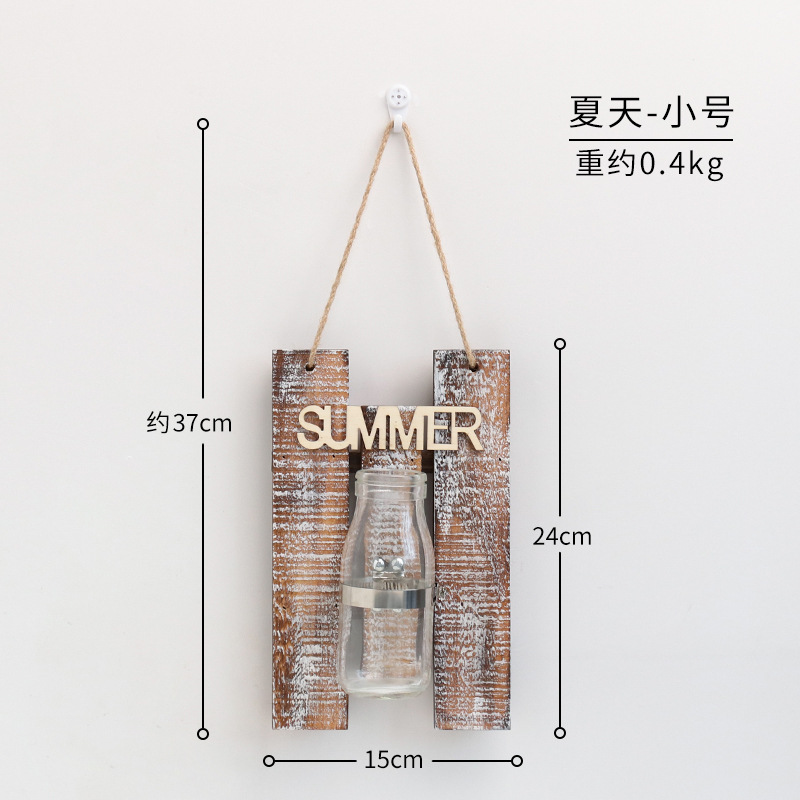 彩色木板绿萝植物水培壁饰 家居客厅墙面悬挂透明玻璃瓶装饰壁挂