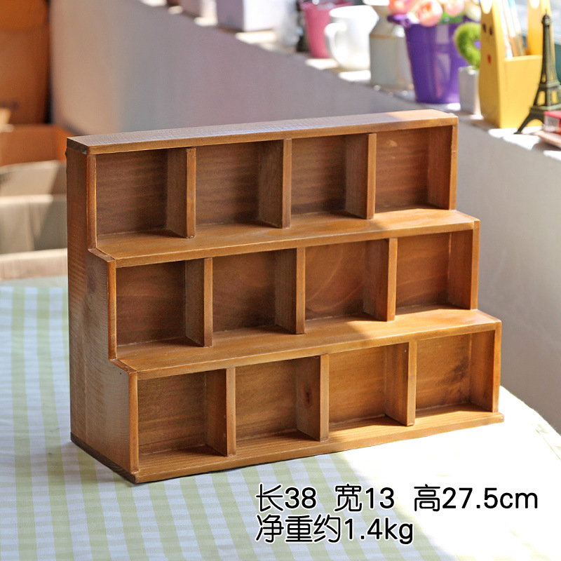 zakka杂货架3层十二格复古木制收纳柜 做旧家居整理储物挂壁柜