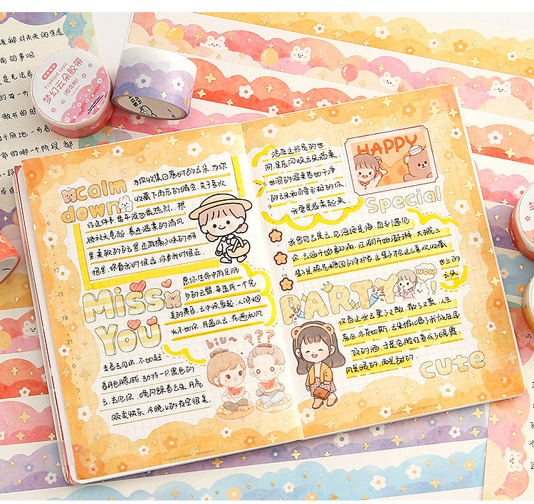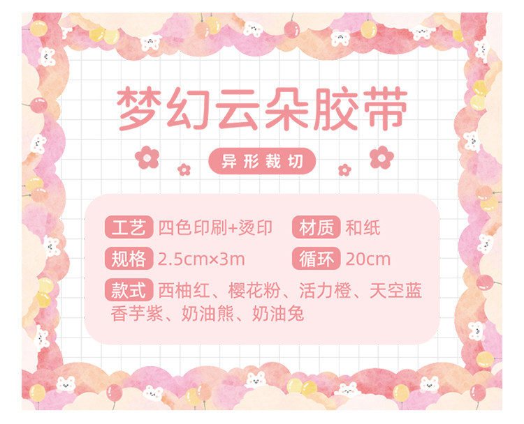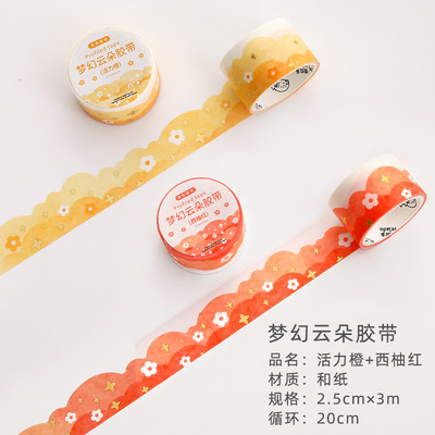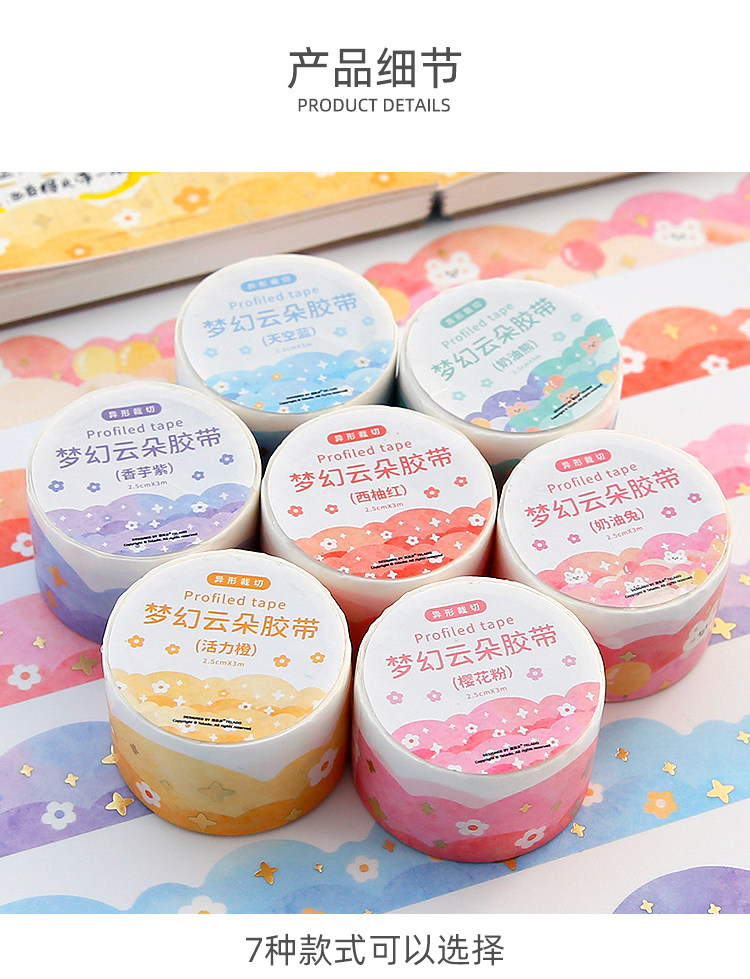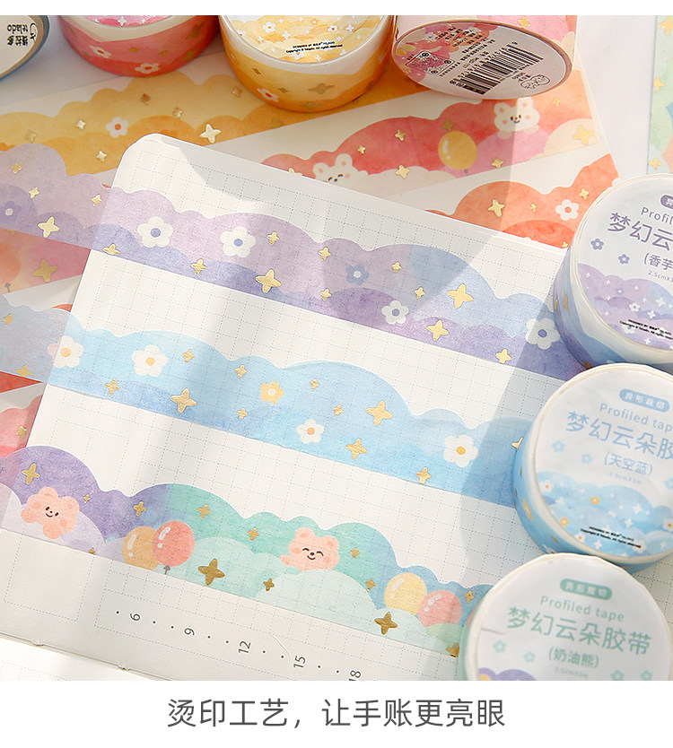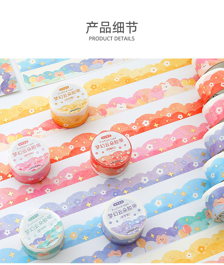 梦幻云朵胶带手帐贴纸波浪造景和纸素材异形边框手账胶卷