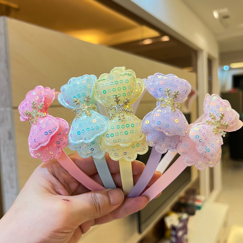 韩版彩虹渐变色儿童发箍亮片蝴蝶卡通可爱宝宝头箍超萌公主发卡