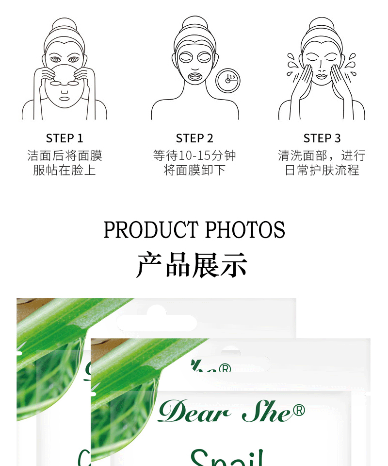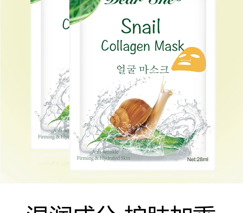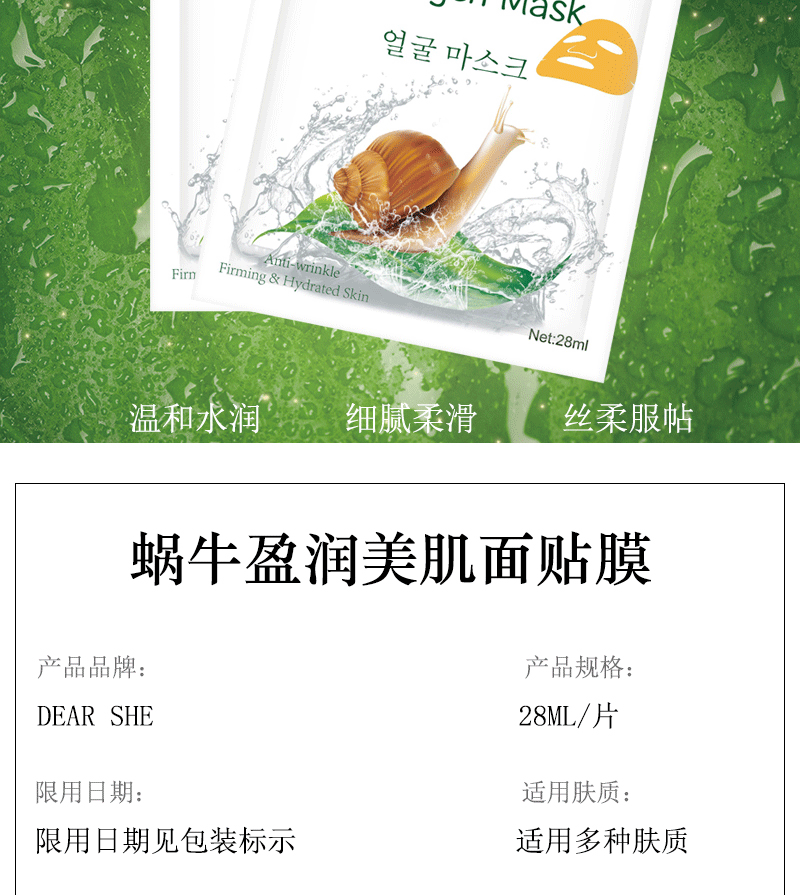 全英文款跨境DEAR SHE蜗牛面膜补水保湿面膜外贸直播批发厂家