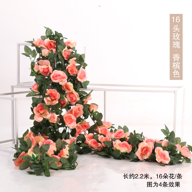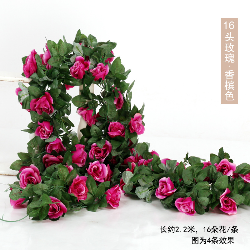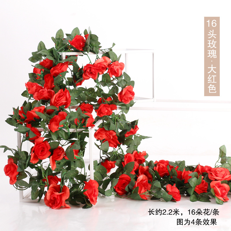 仿真玫瑰花藤 塑料假花藤条 绿叶植物花藤蔓婚庆家居装饰花藤批发