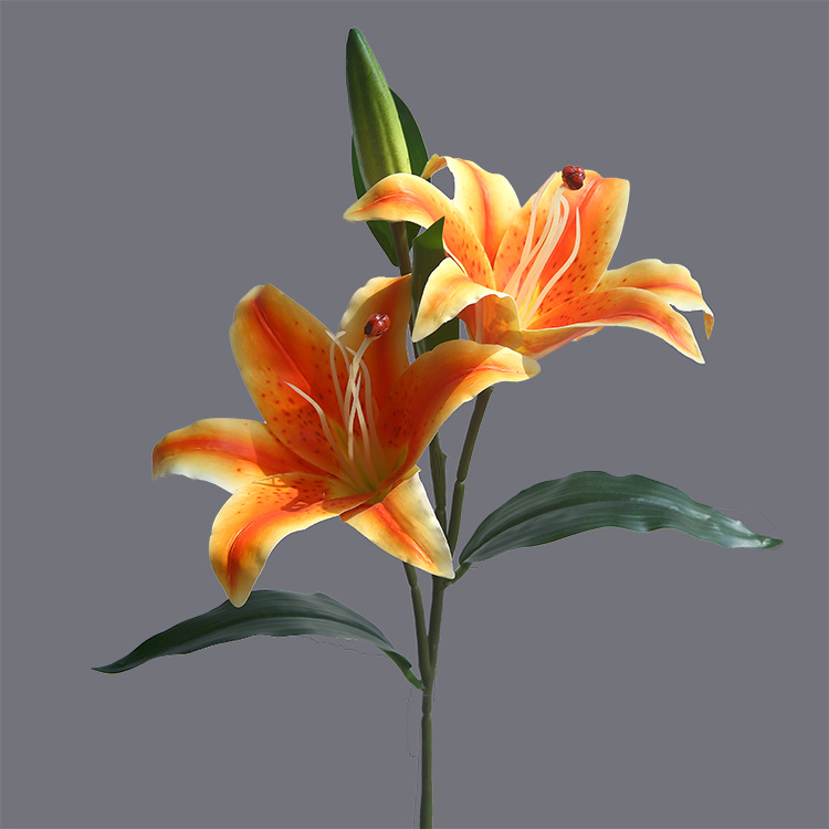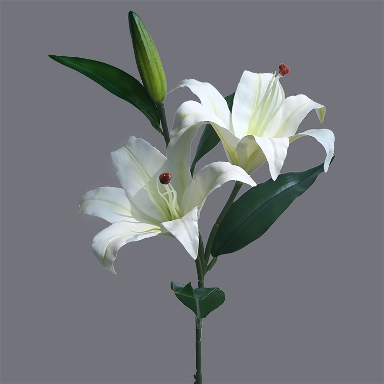 简约唯美 三头百合仿真花假花客厅摆设家居布置花瓶摆件花艺套装
