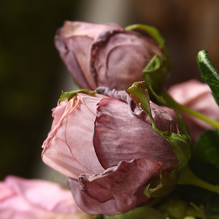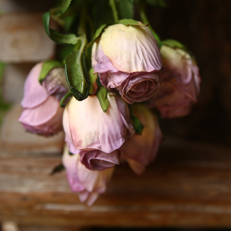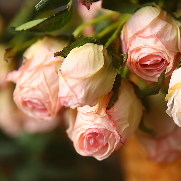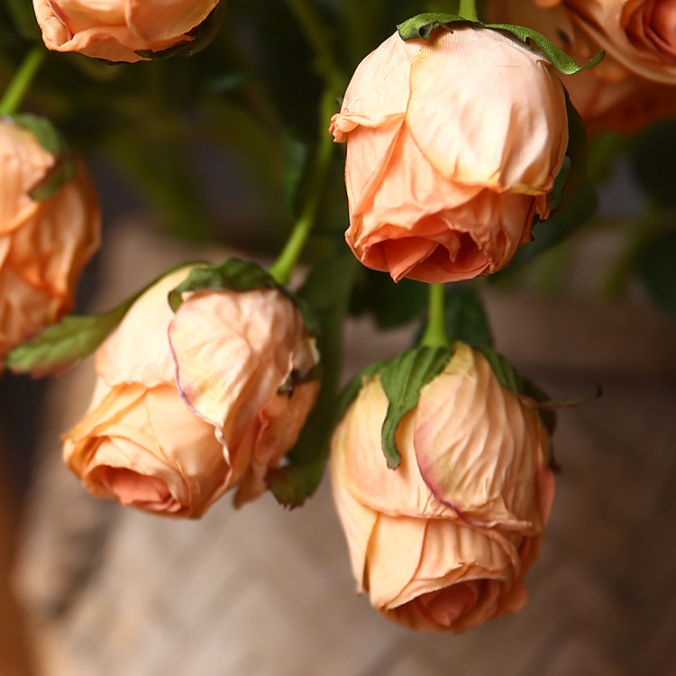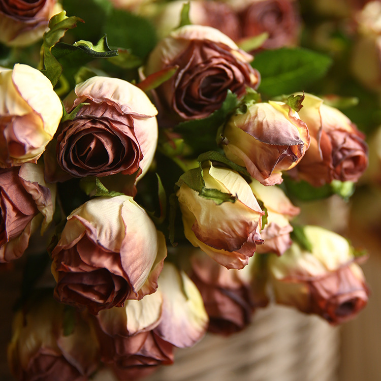 七头焦边玫瑰仿真花假花简约欧式酒店餐厅装饰摄影拍照道具