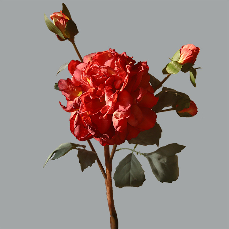 油画牡丹欧式复古牡丹焦边牡丹家居装饰仿真花假花花艺摆件