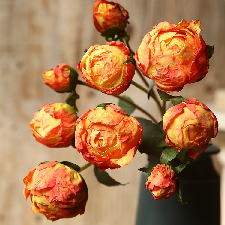 秋色手札牡丹花苞复古焦边仿真花假花干花摆设装饰花客厅