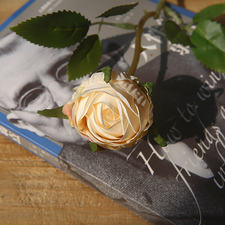 单枝小玫苞仿真花假花插花摆件家居装饰客厅花艺创意设计
