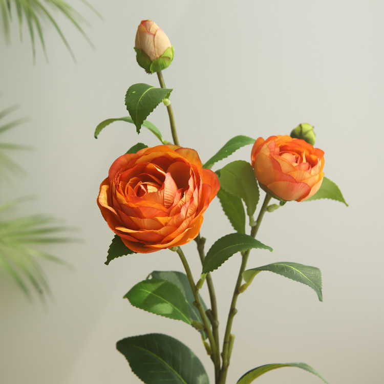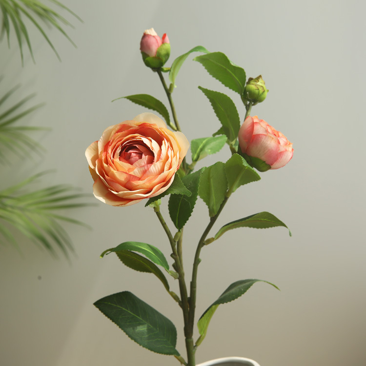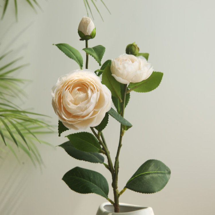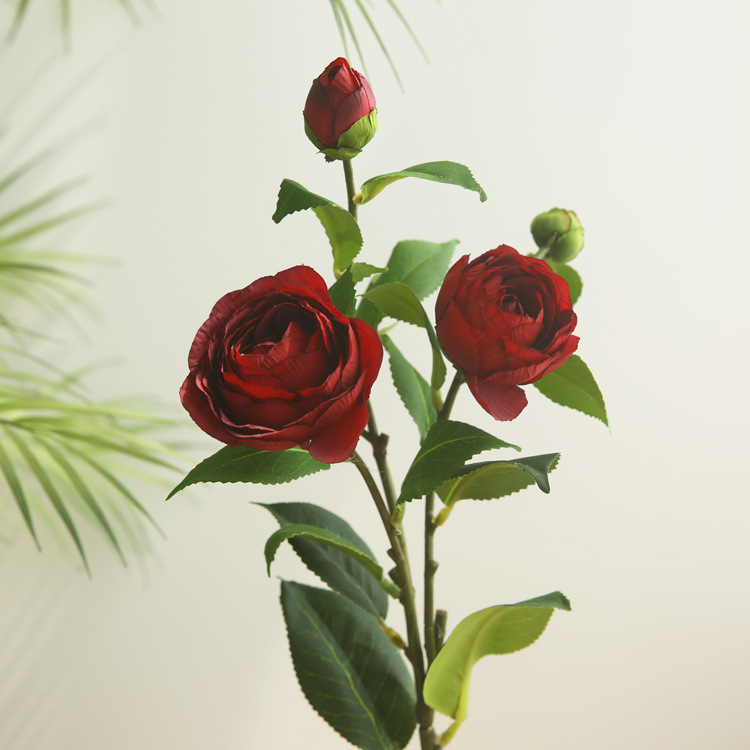 三头茶花欧式仿真花人造绢花假花家居客厅餐厅装饰花拍摄道具