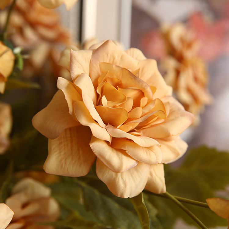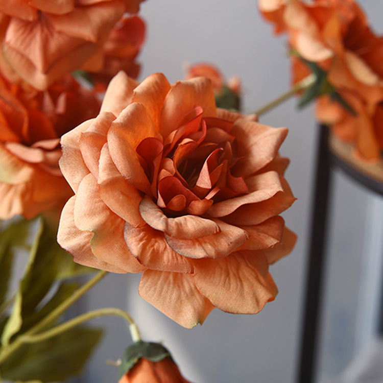 五头卷边月季仿真花假花家居布置客厅装饰摄影道具插花设计