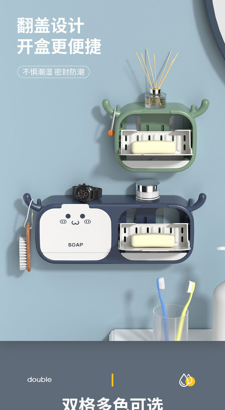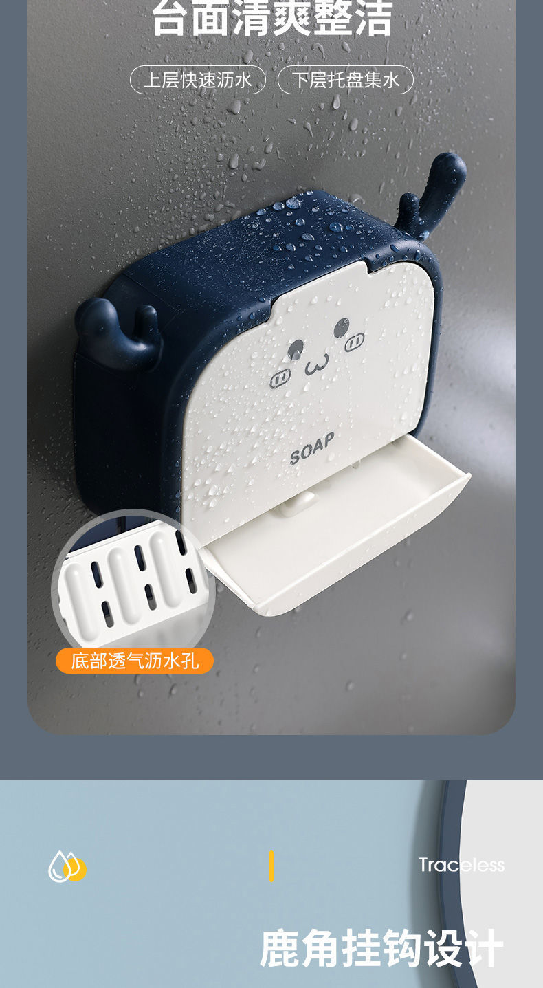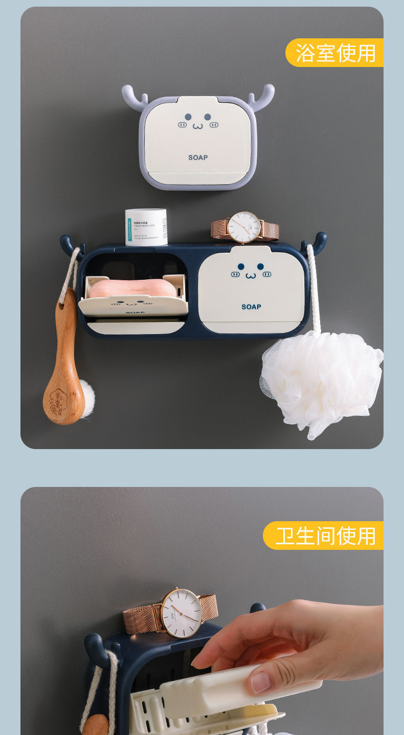 香皂盒免打孔壁挂式肥皂盒子挂壁沥水家用款皂盒洗手台日用百货