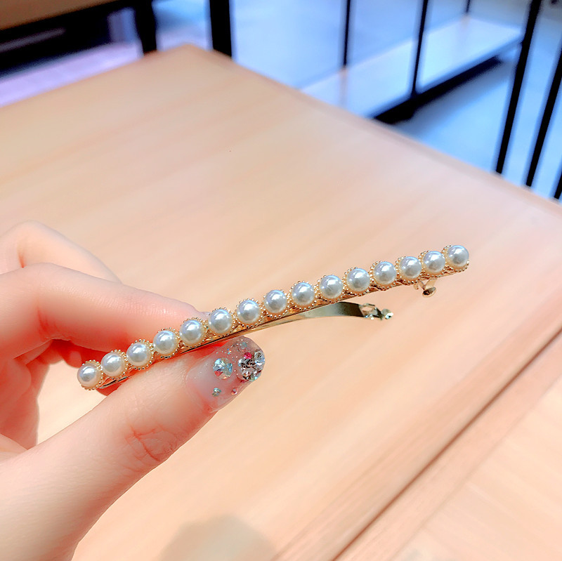 韩国东大门发夹一字夹满水钻珍珠发夹弹簧夹顶夹发卡边夹刘海夹女