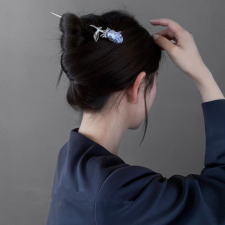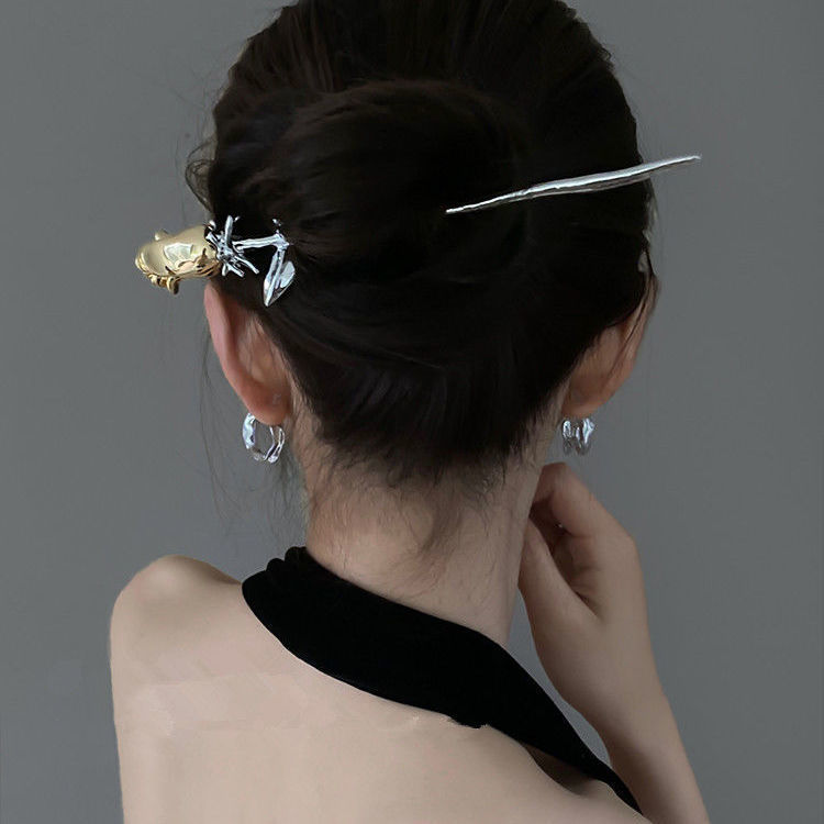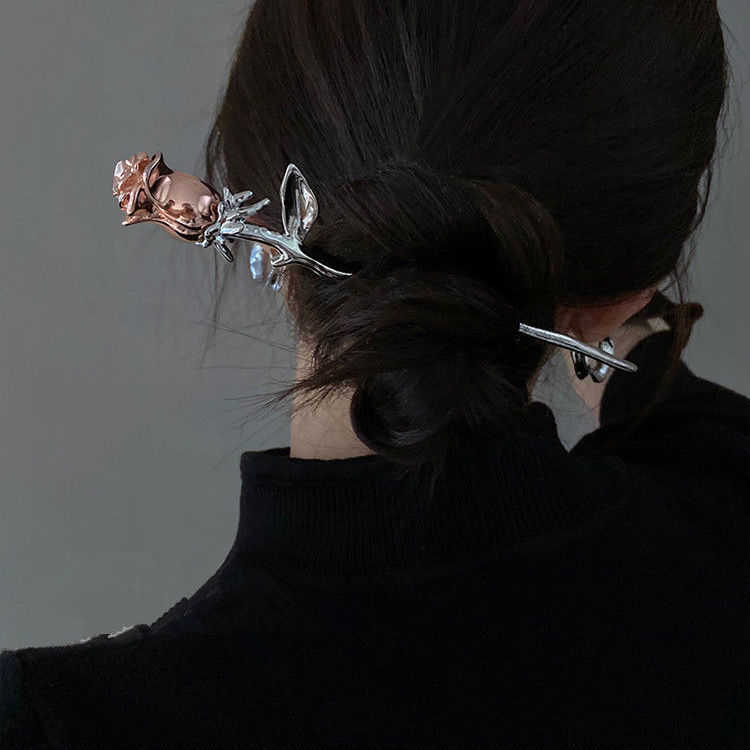 金属玫瑰花朵发簪现代简约常用簪子少女后脑勺盘发器高级质感发钗