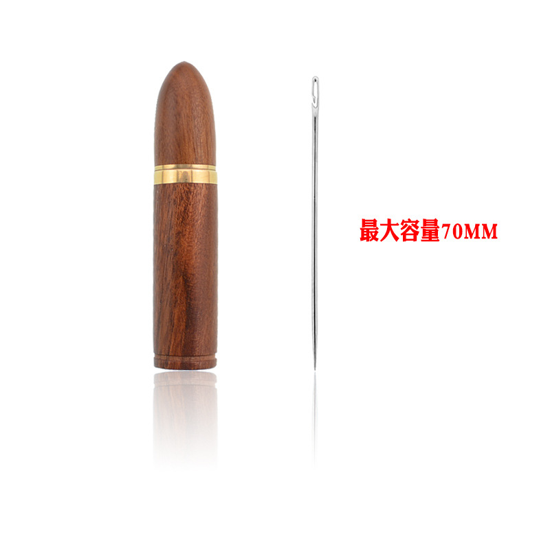 圆红木精致加厚檀木装针筒 家用针存放不锈钢牙签筒 DIY收纳针筒