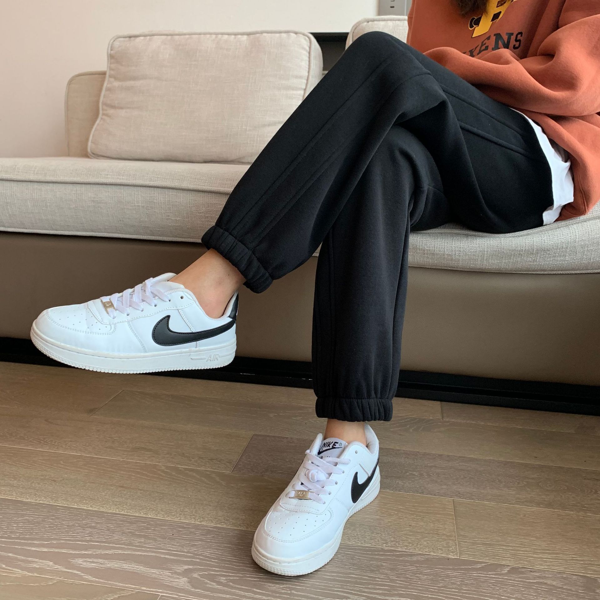 灰色运动裤女春秋冬宽松束脚高腰小个子阔腿裤休闲华棉加绒卫裤子