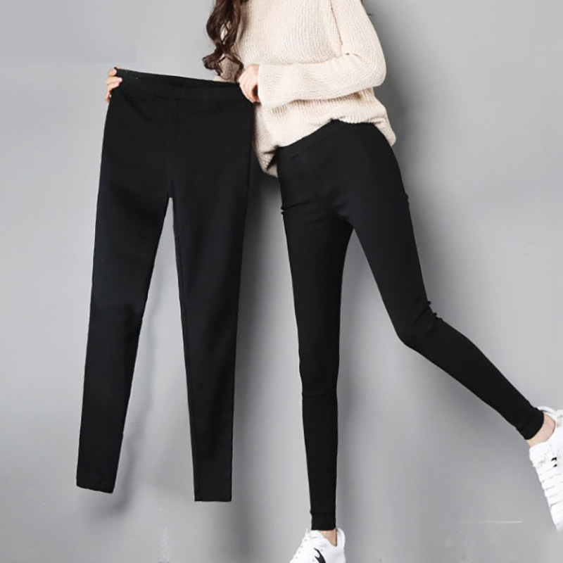 光泽裤女外穿加绒加厚高腰显瘦踩脚打底裤秋冬大码紧身保暖小脚裤