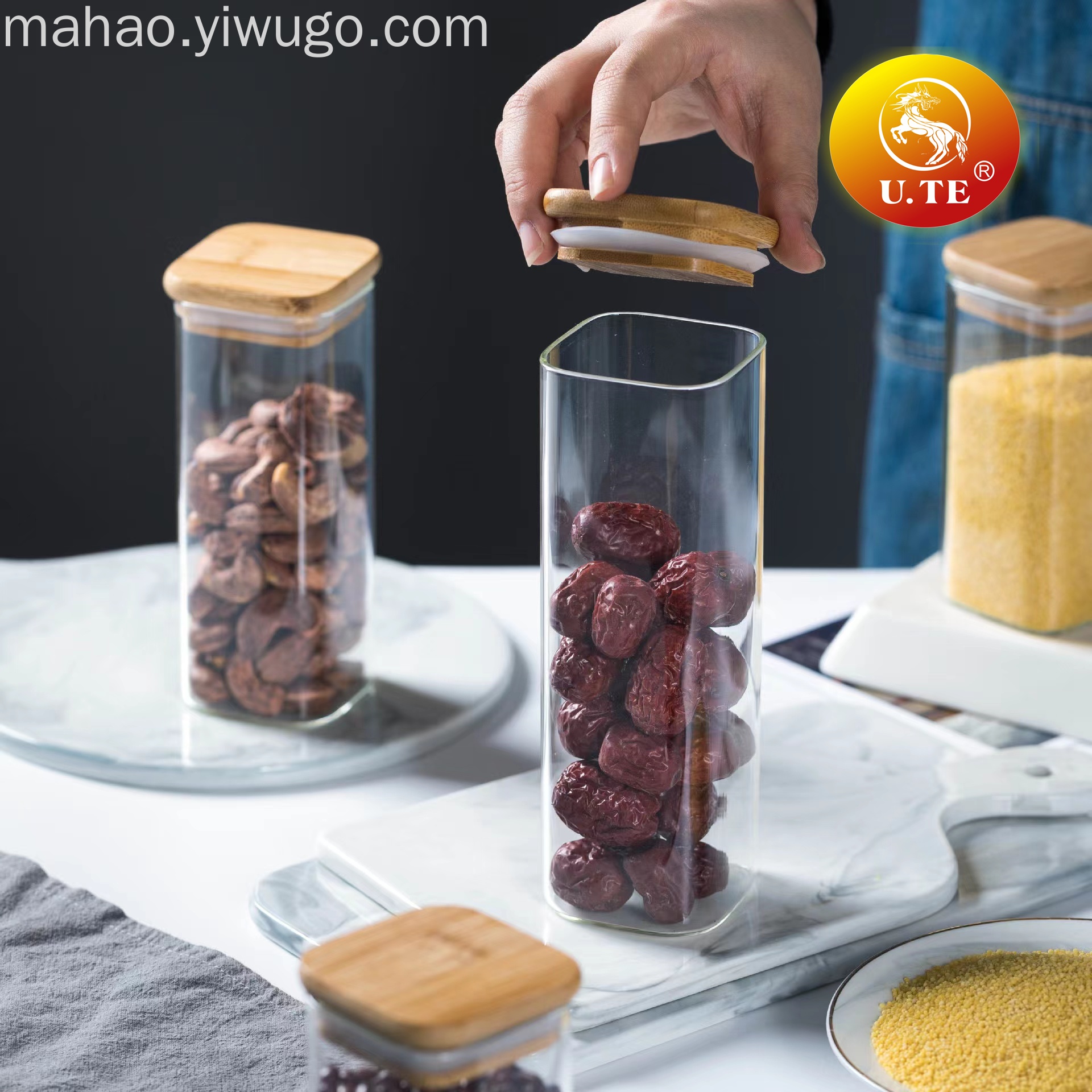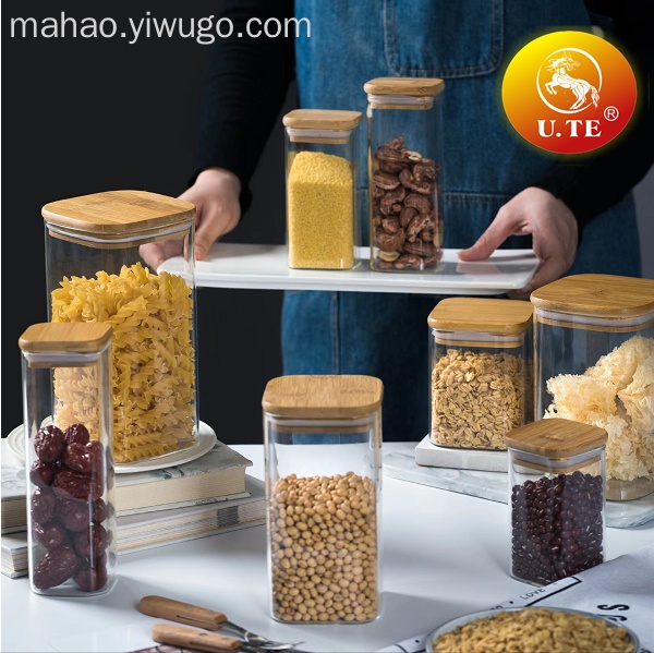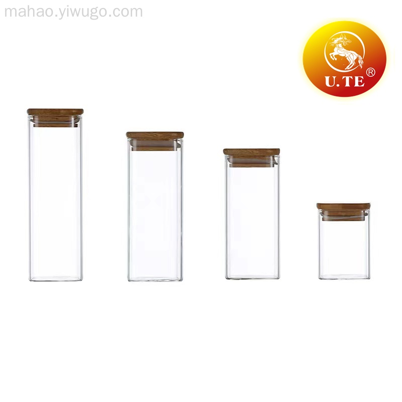 方型玻璃竹盖密封罐储物罐