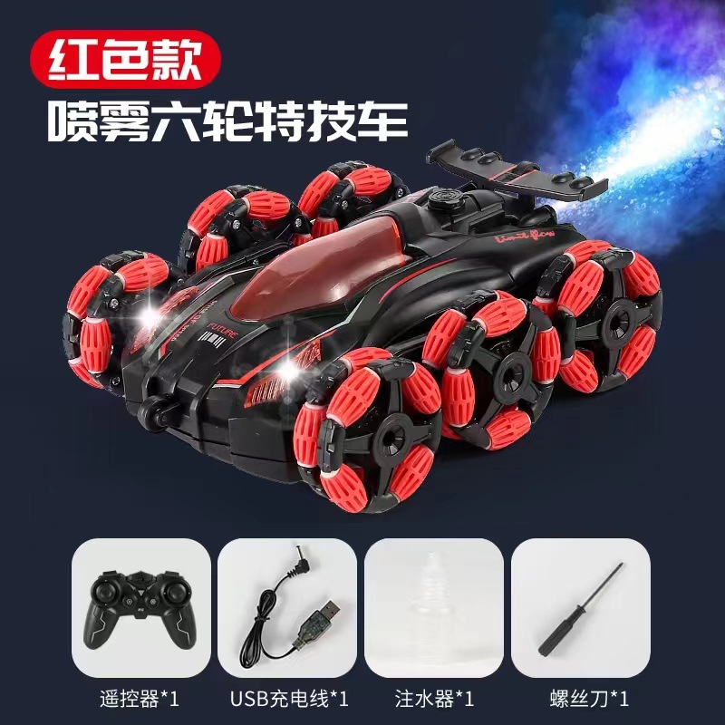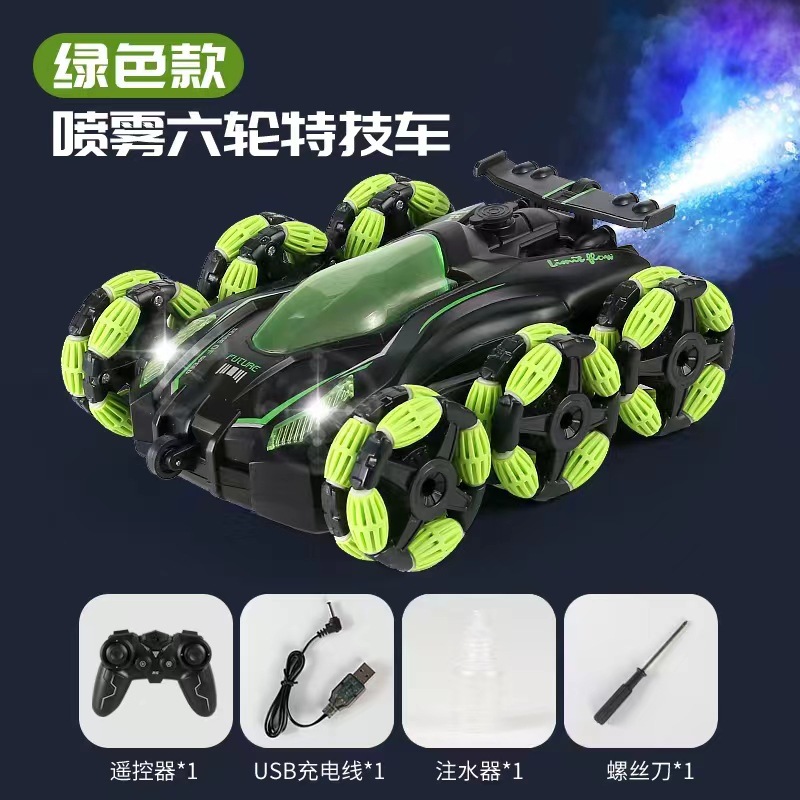 新品遥控车 摆臂喷雾六轮特技车 四驱越野攀爬车变形车儿童玩具车