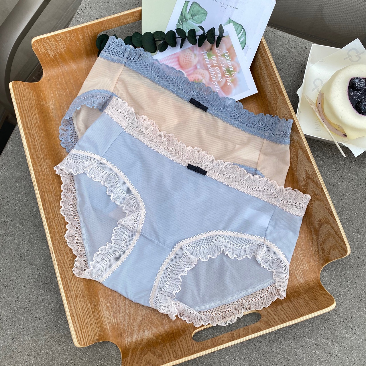 轻薄透气 舒适冰丝蕾丝边中低腰少女内裤 清凉夏日舒爽内裤女包臀