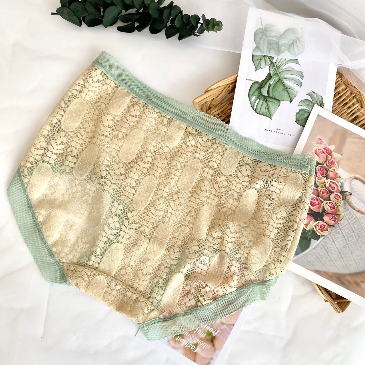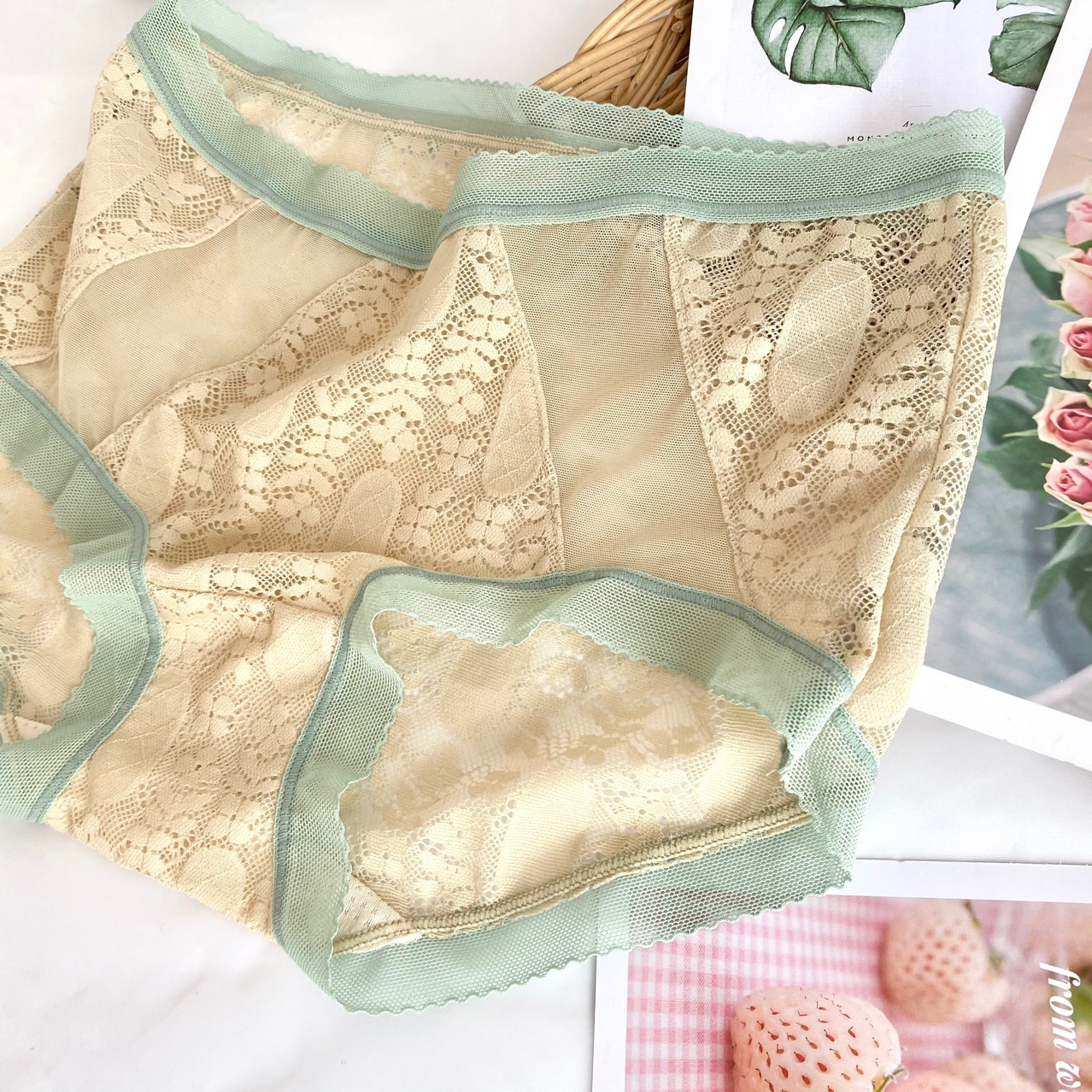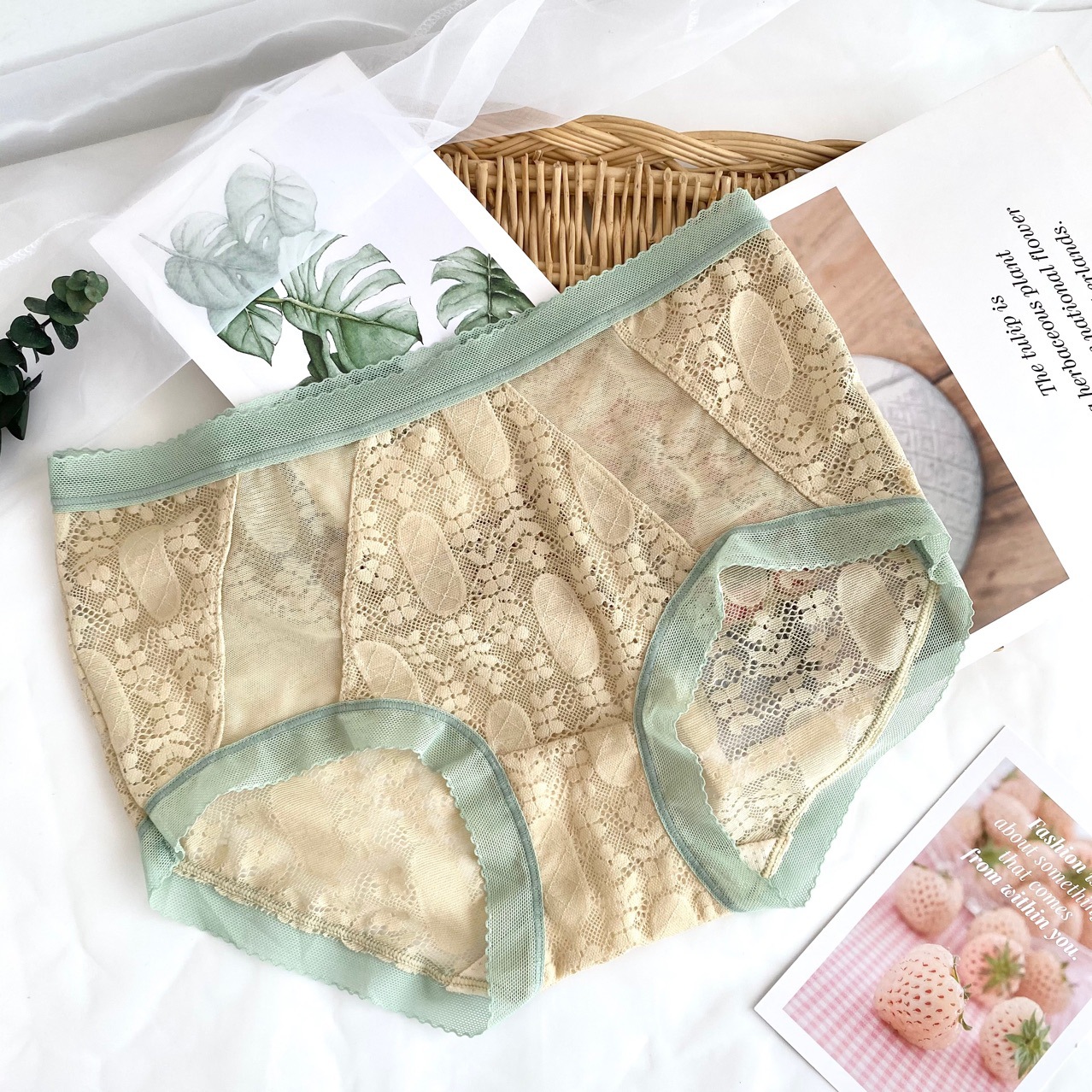 2022高端大码撞色蕾丝边中腰透气舒适棉档透明女士包臀内裤品牌