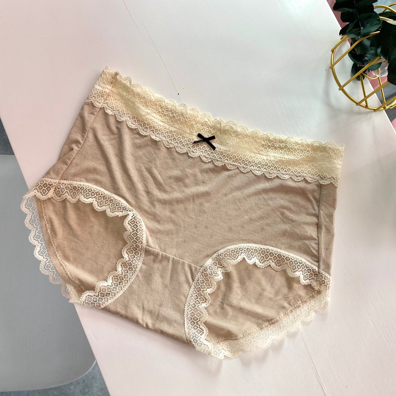 自留 轻薄舒柔锦莫 透气蕾丝边舒适包臀 粘纤女士冰丝暗花内裤女
