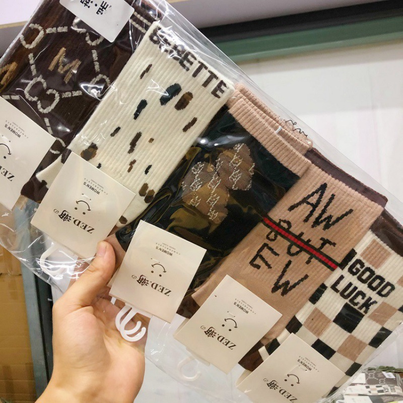 秋冬新款男女士潮款长筒堆堆袜运动学院风袜彩条一朵花123双杠袜